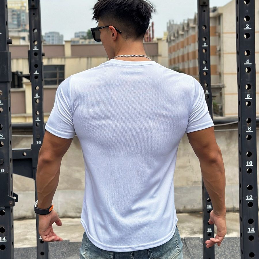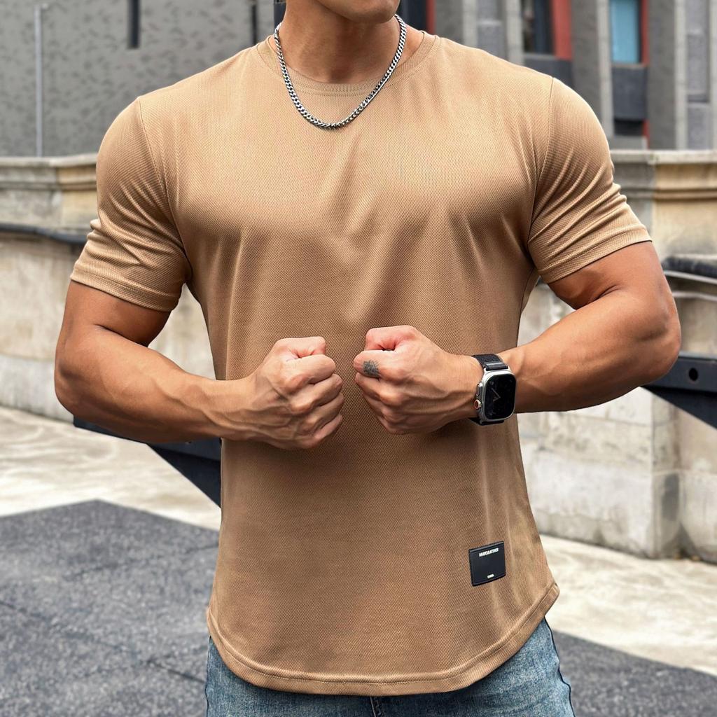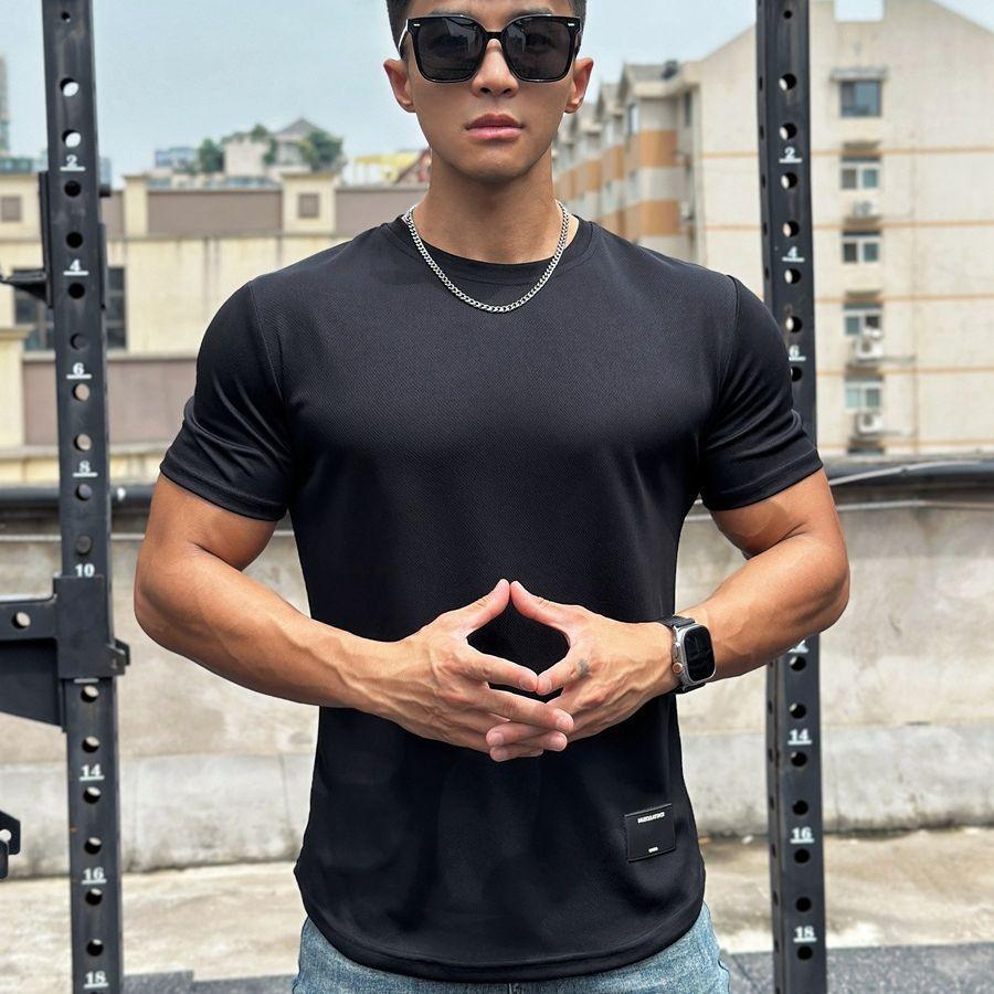 Американский стиль, мужская летняя модная облегающая спортивная футболка для фитнеса с коротким рукавом и круглым вырезом