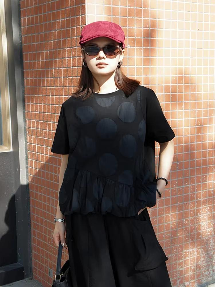 Xitao Футболка в горошек с контрастным узором в стиле пэчворк ZY8921