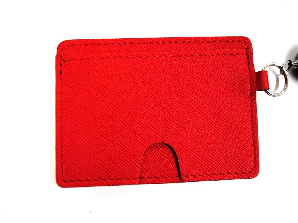 Чехол для пропуска из коровьей кожи в держателе для поездок на работу с выдвижным ремешком для катушки из кожи [Bell Label] [Сделано в Японии] (красный)
