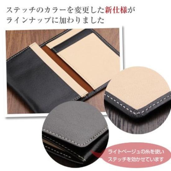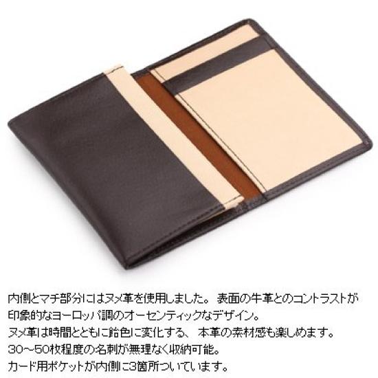 Сделано в Японии. Визитница из натуральной кожи, дубленая кожа, темно-коричневая с бежевой строчкой [Abies] (внутренний тип)