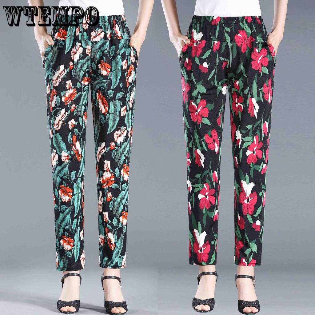Летние брюки с цветочным принтом для женщин среднего и пожилого возраста. Эластичные брюки больших размеров с высокой талией для женщин пожилого возраста. — купить товар онлайн с бесплатной доставкой по всему миру!