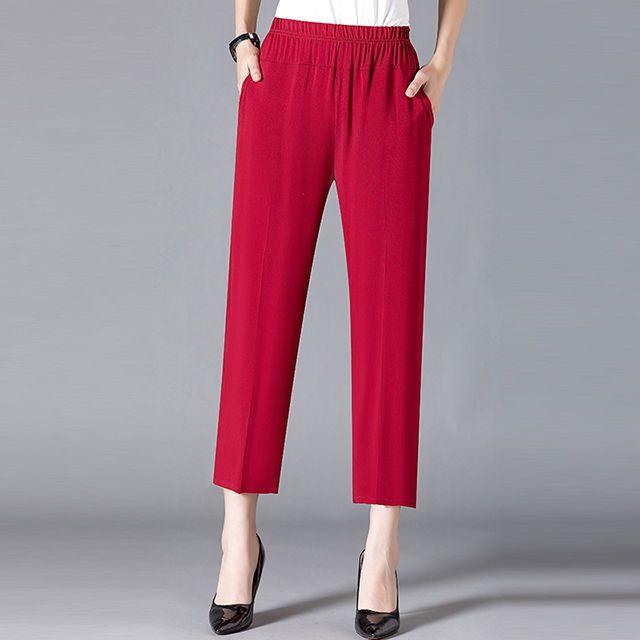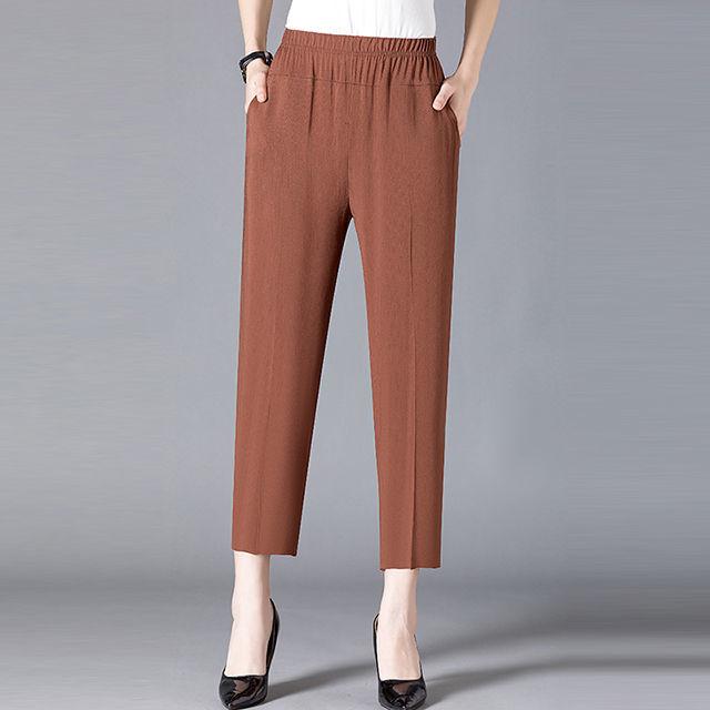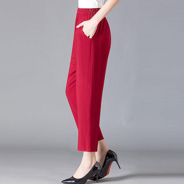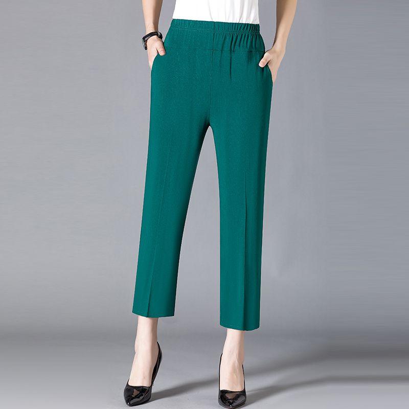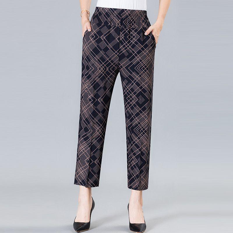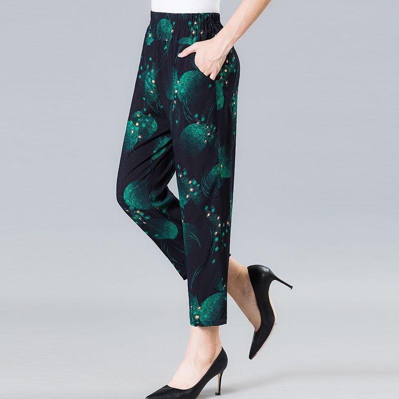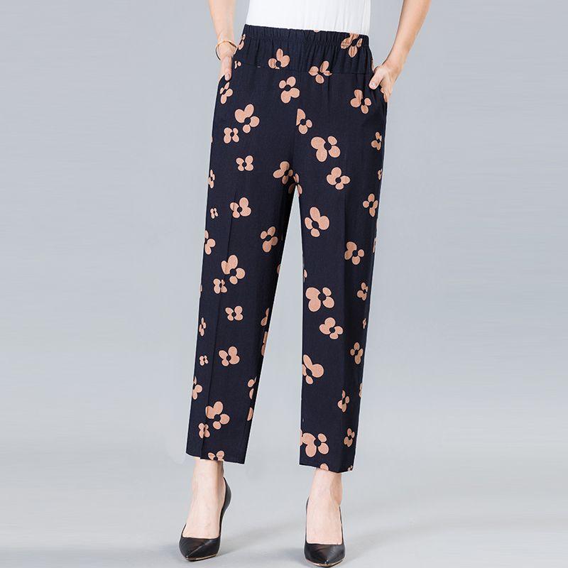Прямые брюки для мамы, летние брюки с цветочным принтом для среднего и старшего возраста, укороченные брюки, повседневные женские брюки с высокой талией