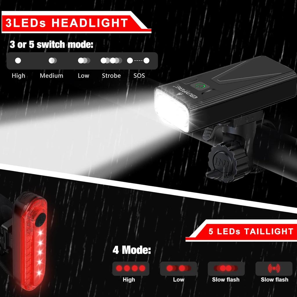 EBUYFIRE USB перезаряжаемый велосипедный фонарь 3000 люмен велосипедный фонарь 3 светодиода супер яркий передний фонарь задний светодиод 3 режима освещения
