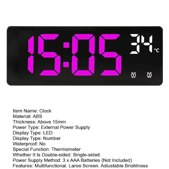 Надежный помощник в измерении времени: Питание всего от 3 батареек типа ААА (не включено), эти часы поддерживают точное время и настройки будильника без особых усилий. Постоянно включенный при подключении к сети экран обеспечивает удобство, а голосовое управление добавляет нотку современности в вашу повседневную жизнь.