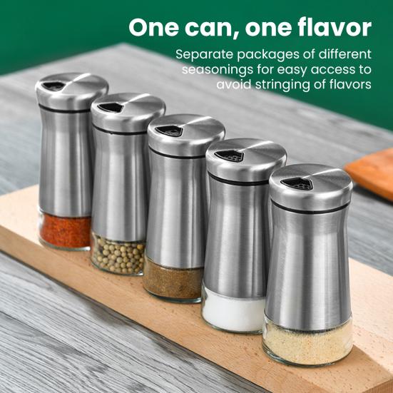 Расширьте свои кулинарные возможности с помощью этого стильного набора бутылочек для приправ. Эти шейкеры, изготовленные из высококачественного стекла и нержавеющей стали, предназначены для сохранения свежести и аромата ваших специй.. Герметичные крышки обеспечивают сохранение влаги внутри, сохраняя свежесть ваших приправ.. Легко заполняется, завинчивающиеся крышки можно снять для удобства пополнения.