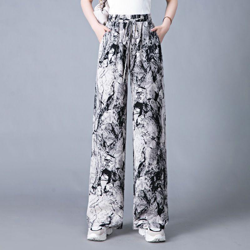 Женские укороченные брюки Ice Silk с высокой талией Wave Point, широкие брюки, тонкие летние солнцезащитные брюки на весну и осень