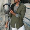 Мужская весенняя однотонная рубашка свободного покроя из хлопка и льна с длинными рукавами, молодежная дышащая блузка с лацканами
