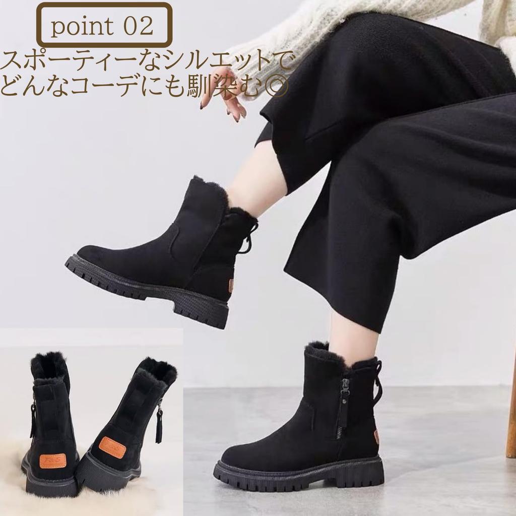 Ботинки в стиле Нибун Ноичи с застежкой-молнией из овчины и замши, материал для меха боа [1/2style] женские (Черный, 24,5 см.)