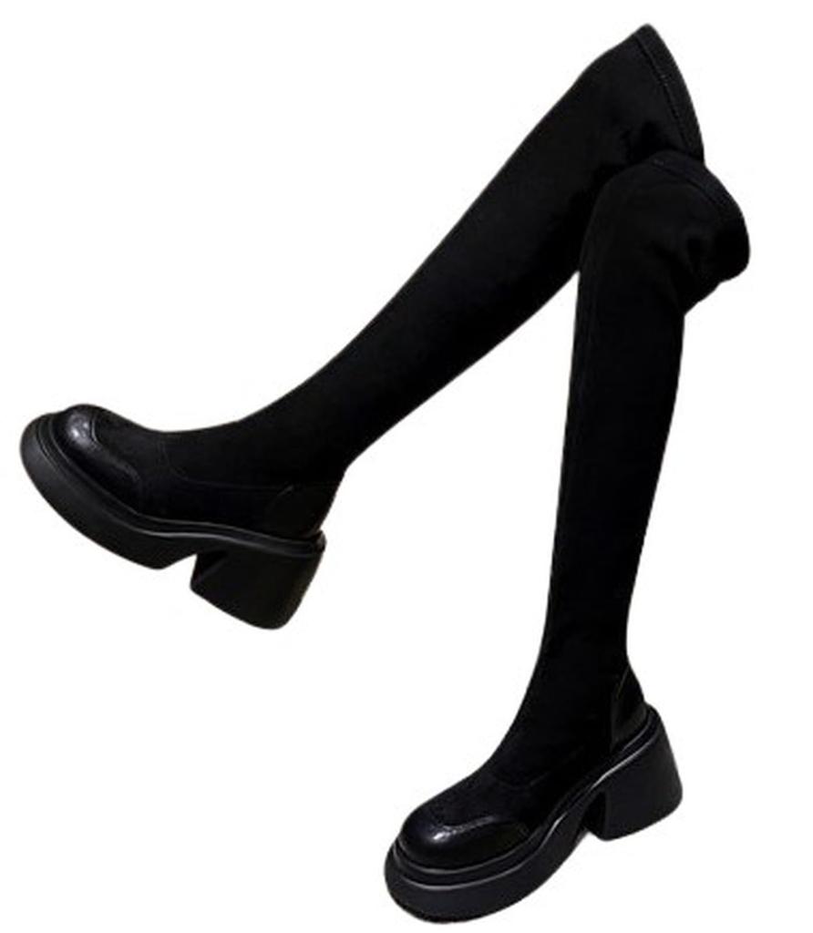 Сапоги до колена на толстой подошве Короткие сапоги Сапоги Сапоги до колена Сапоги на платформе Сапоги-носки Сапоги из натуральной кожи Длинные сапоги Водонепроницаемый черный каблук из овчины