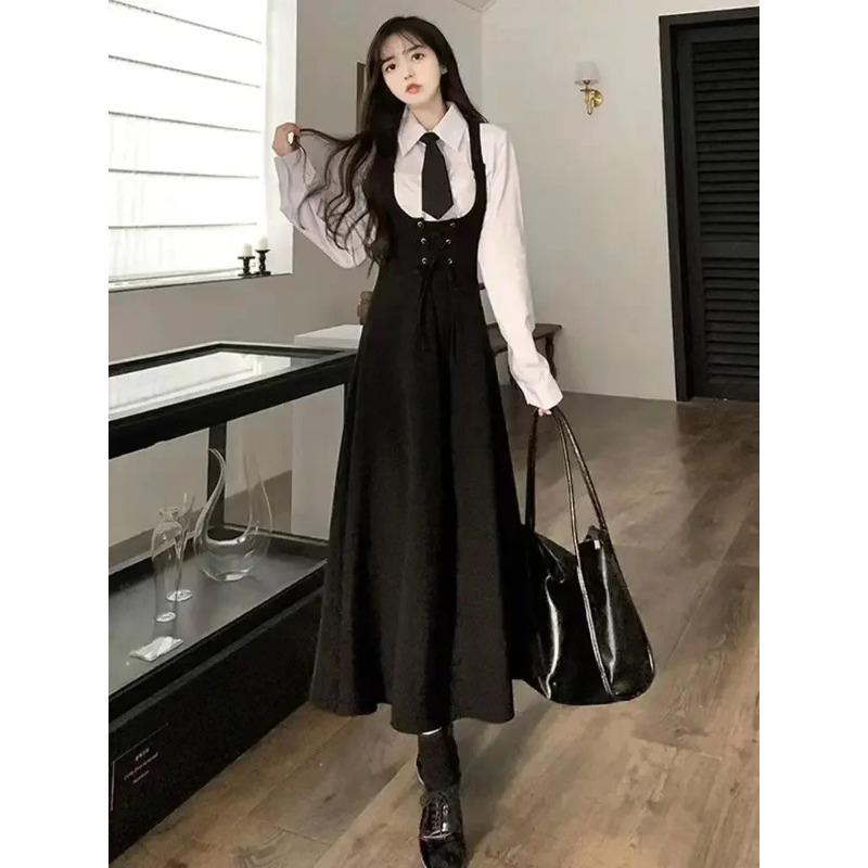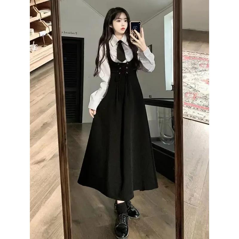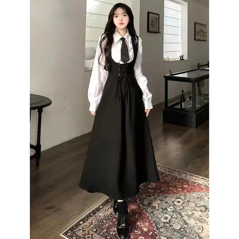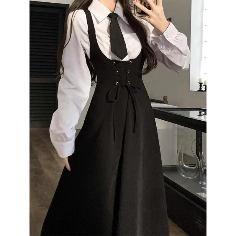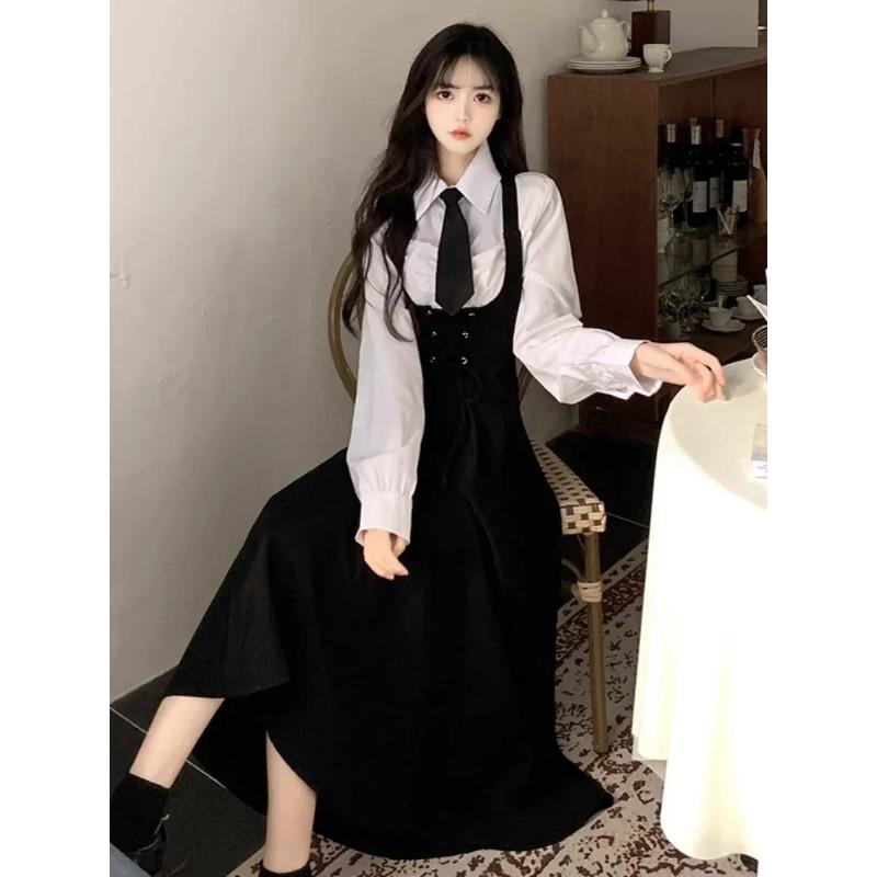 Женская белая рубашка с лацканами на весну-лето и осень + свободный жилет средней длины, юбка, комплект из двух предметов с поясом