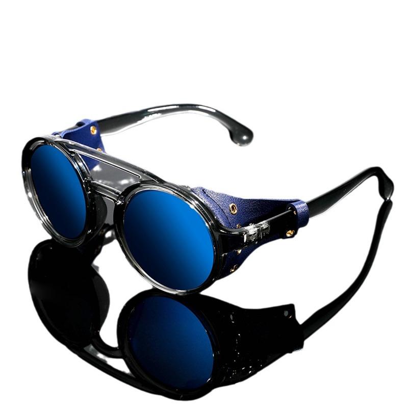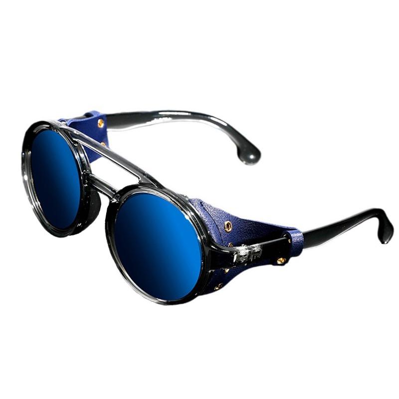 Модные солнцезащитные очки в стиле стимпанк для мужчин и женщин, классические солнцезащитные очки с круглыми кожаными линзами по бокам
