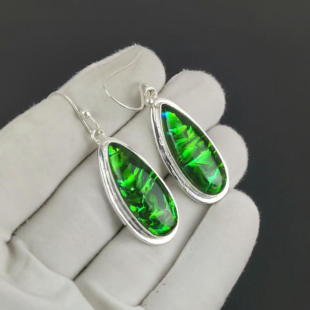 Удивительные серьги из серебра 925 пробы с зеленым триплетом огненного опала, серьги-подвески из серебра ручной работы в стиле бохо, подарок на день рождения для жены