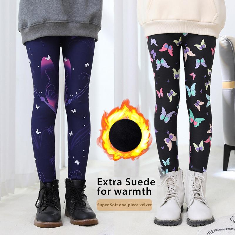 Леггинсы для девочек, плотные, теплые, длинные брюки с принтом, детские эластичные леггинсы