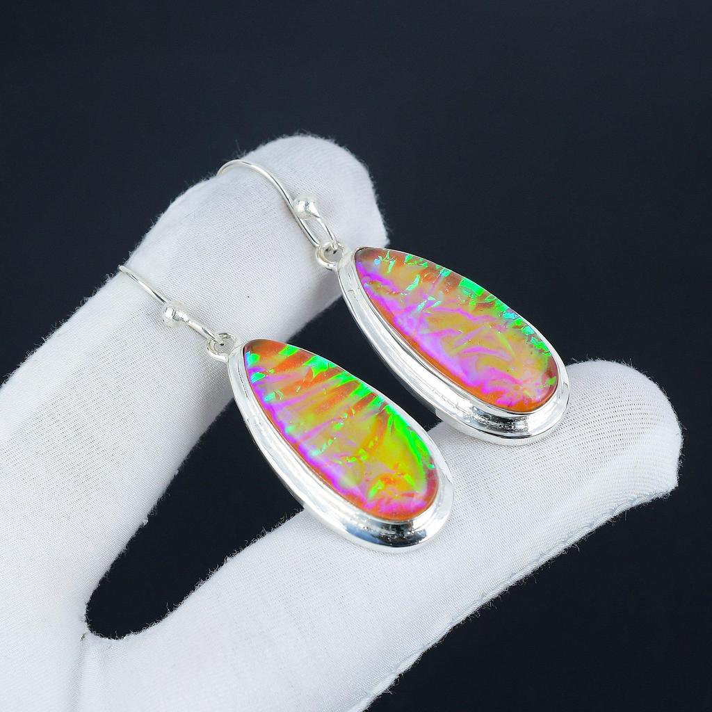 Красивые серьги из розового триплетного огненного опала из стерлингового серебра 925 пробы, серьги-подвески из серебра ручной работы в стиле бохо, подарок на помолвку — купить товар онлайн с бесплатной доставкой по всему миру!