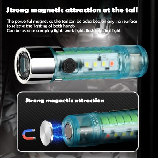 Представляем небольшой фонарик — универсальный аккумуляторный фонарь USB-C, который идеально подойдет для всех ваших нужд в освещении.. Этот карманный фонарик оснащен встроенным литий-ионным аккумулятором с длительным сроком службы и удобным USB-портом для легкой зарядки.. Хвостовая часть фонарика оснащена магнитом и большим крючком, что позволяет легко прикрепить его к любой железной поверхности или повесить на рюкзак.