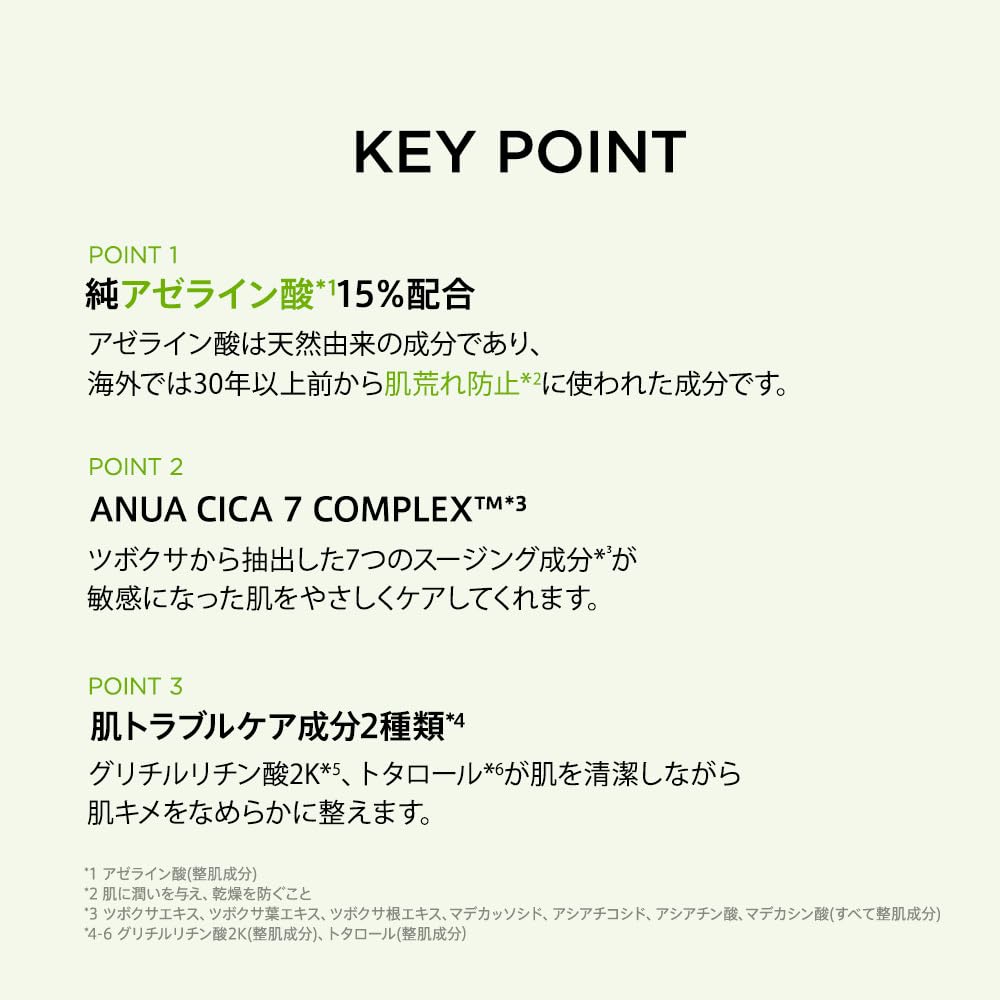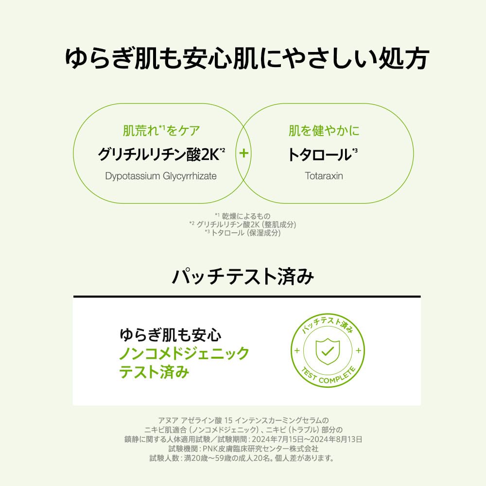 *Интенсивная успокаивающая сыворотка Azelaic Acid 15 может иметь специфический запах из-за своих ингредиентов, но со временем запах испарится.. Кроме того, даже если продукт один и тот же, при взгляде невооруженным глазом могут наблюдаться различия в оттенках цвета.. Обратите внимание, что мы подтвердили отсутствие влияния на качество или эффективность, а также отсутствие проблем с использованием.