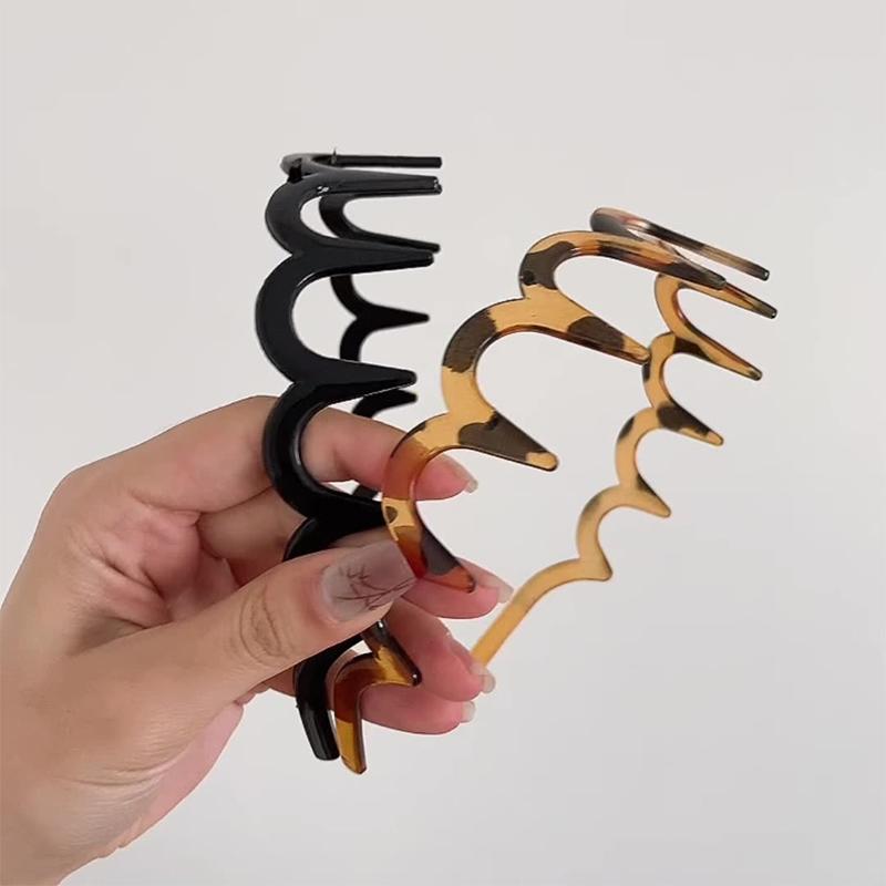 Женский обруч для волос с длинными зубцами акулы и зигзагообразным узором, повязка на голову, расческа для волос, нескользящая волнистая расческа, повязка на голову, аксессуары для укладки своими руками
