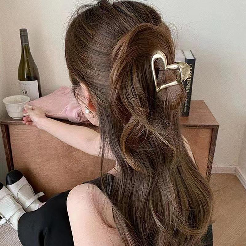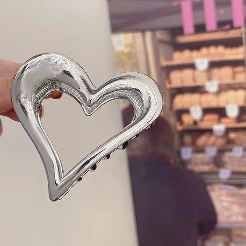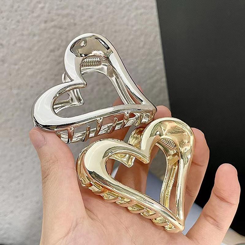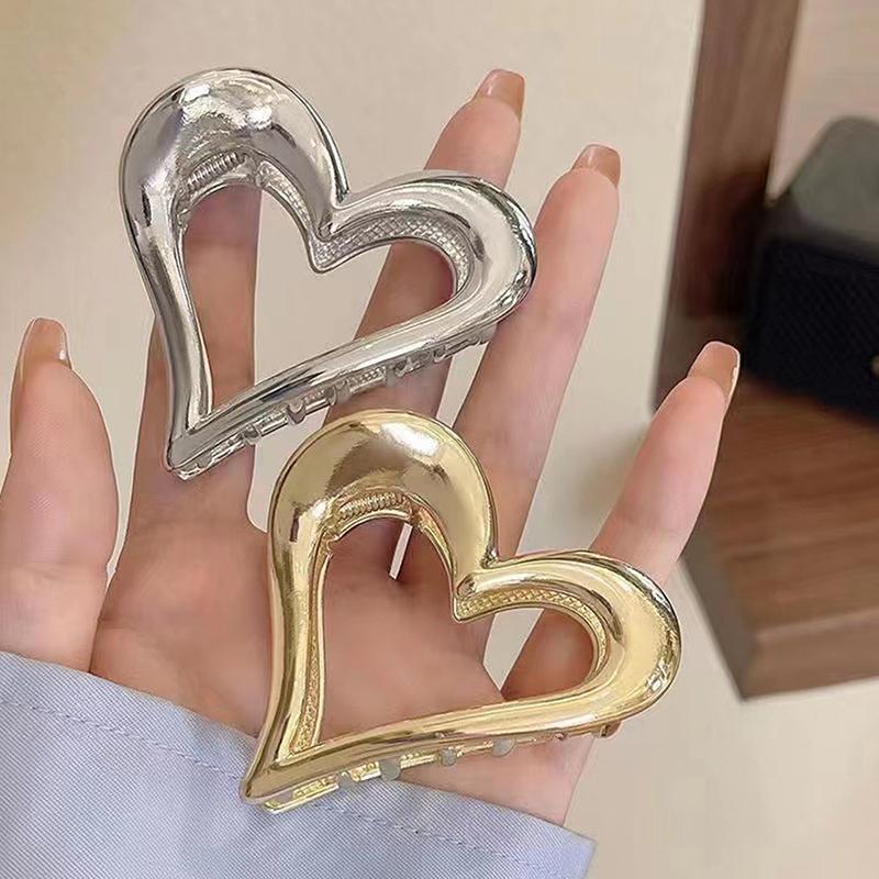Металлические ажурные золотисто-серебристые заколки-краб для волос в форме сердца для женщин и девочек, элегантные женские заколки-краб, аксессуар для волос