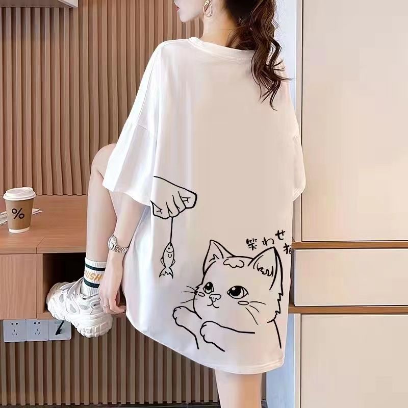 Летняя хлопковая футболка с короткими рукавами, женская корейская версия свободного модного темперамента, милый и простой топ средней длины