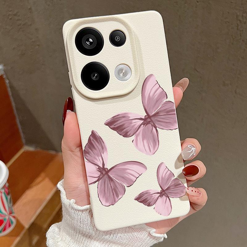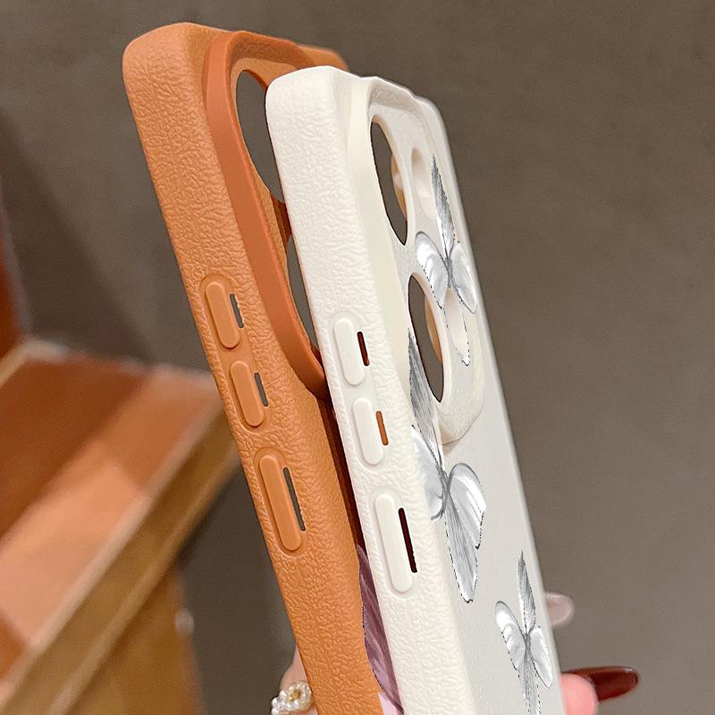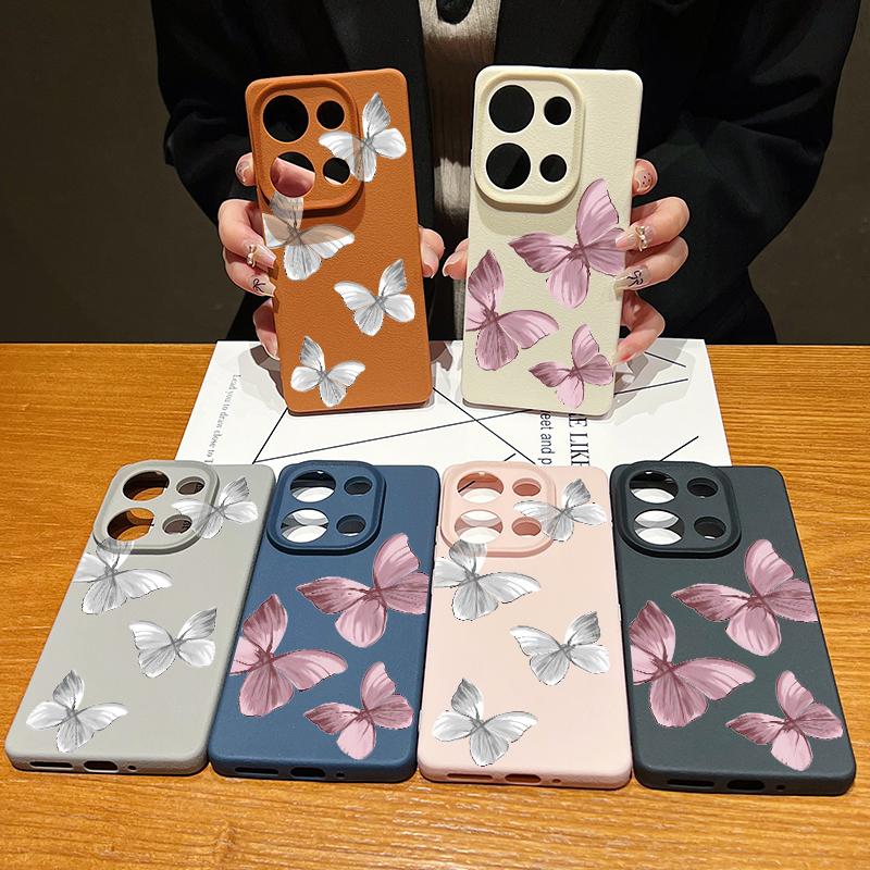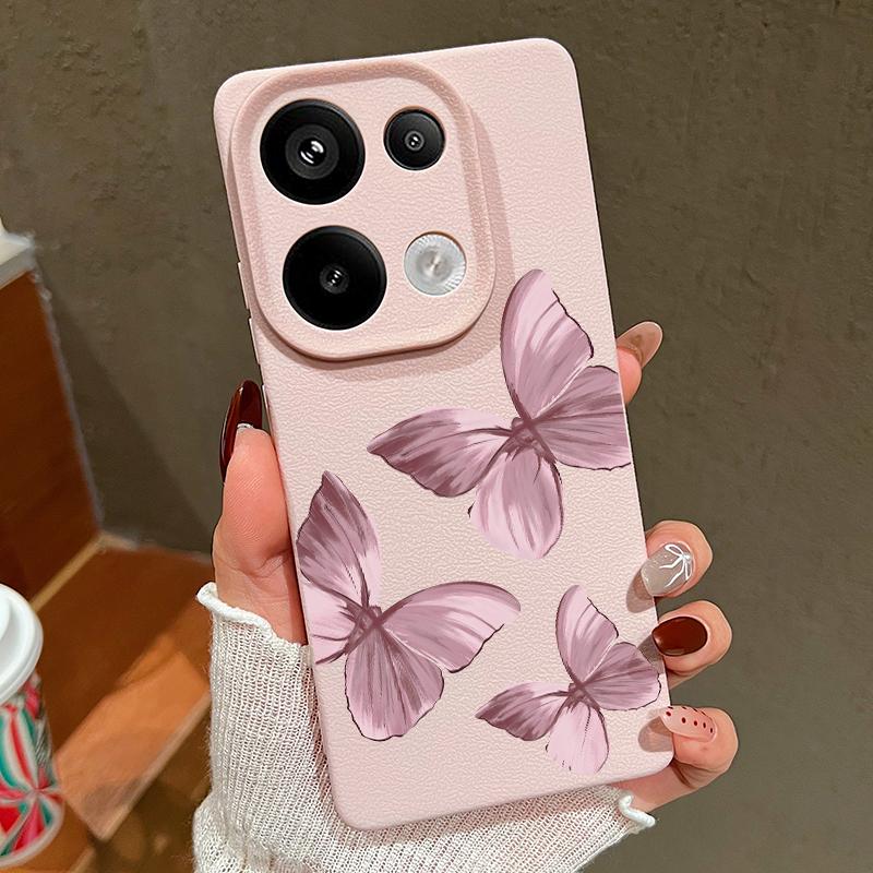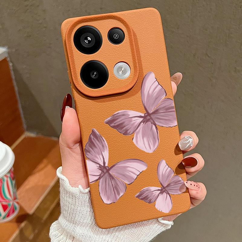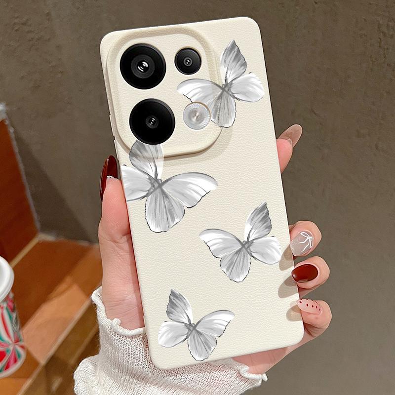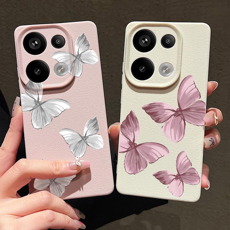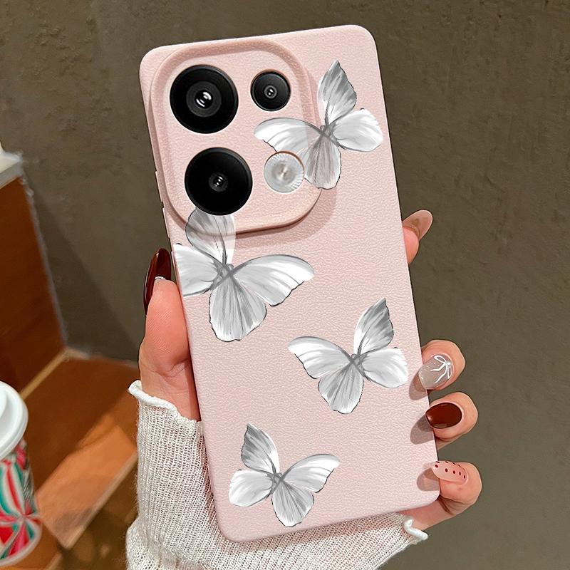 Мягкий чехол с однотонным рисунком бабочки из кожи и текстурой для Xiaomi 13T Pro Redmi X6 M6 Pro Note 14 Pro 13 12 11, матовый тонкий противоударный чехол для телефона из ТПУ