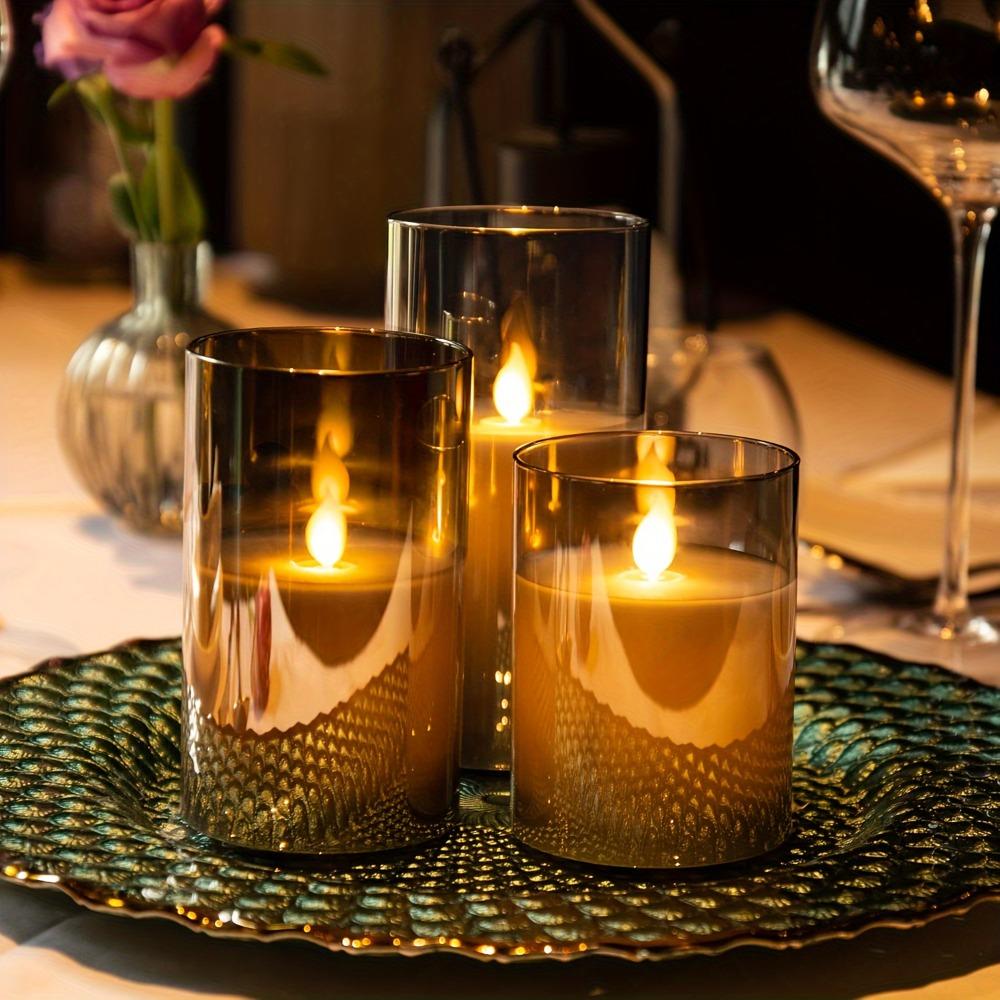 Свеча беспламенная из 3 частей с таймером дистанционного управления: 3D свеча, работающая от батареек, светодиодная колонна-свеча, набор акриловых искусственных свечей, подходит для украшения дома