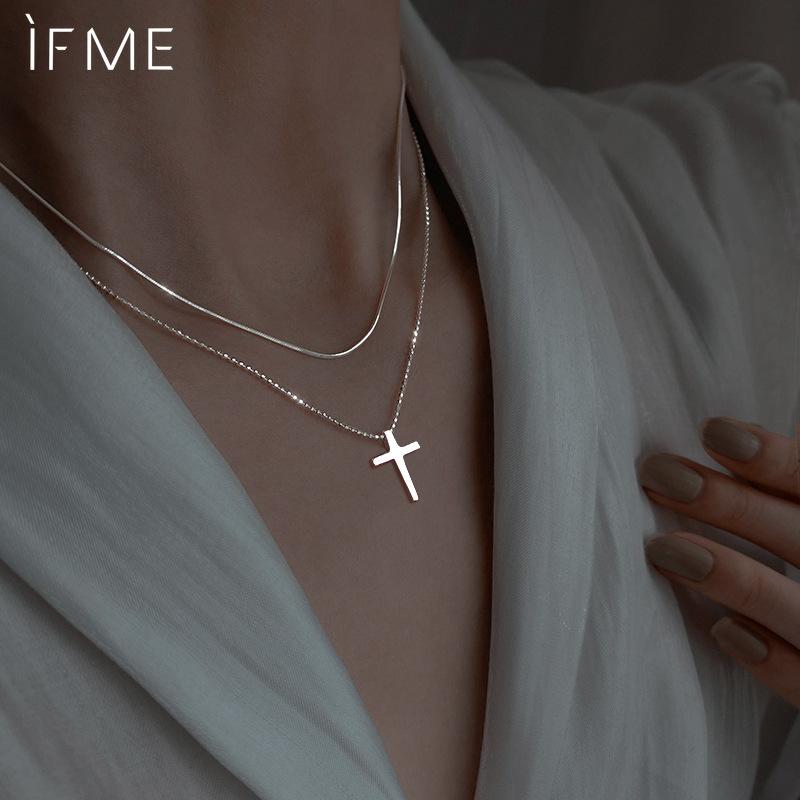 IF ME 1Pcs продает модный и минималистский сверкающий кулон-крест с заклепками с двухслойным ожерельем из сплава — купить товар онлайн с бесплатной доставкой по всему миру!