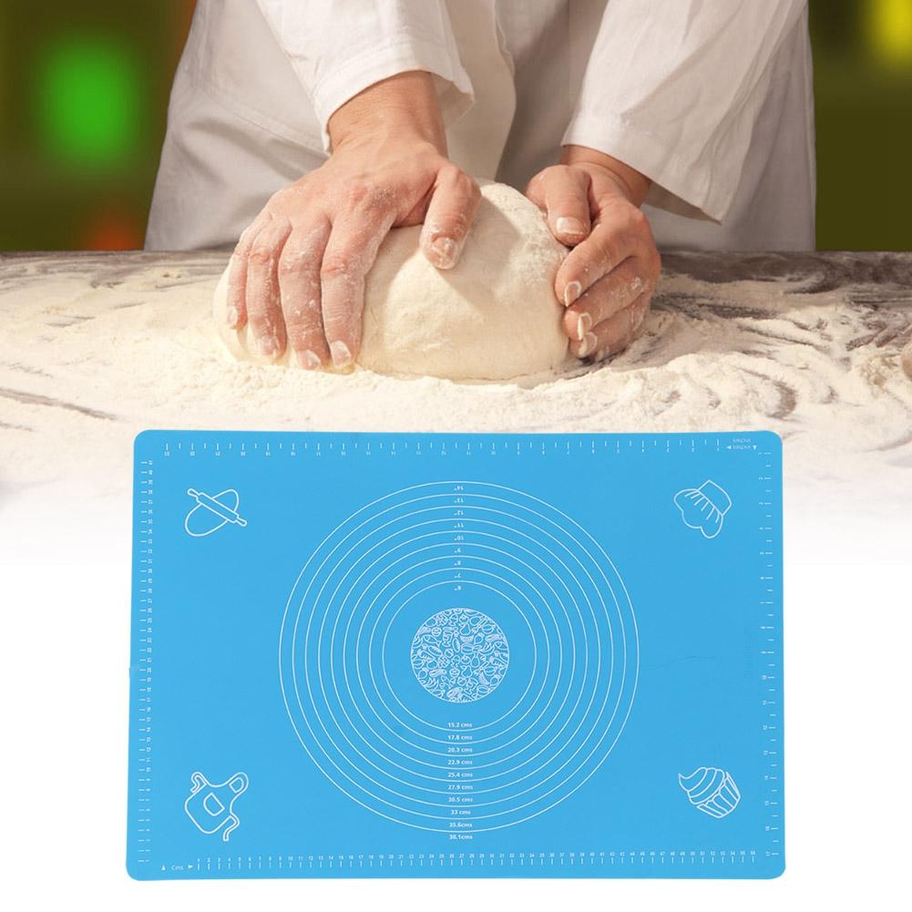 64x45 см термостойкий силиконовый коврик для теста с антипригарным покрытием и весами для выпечки(синий )