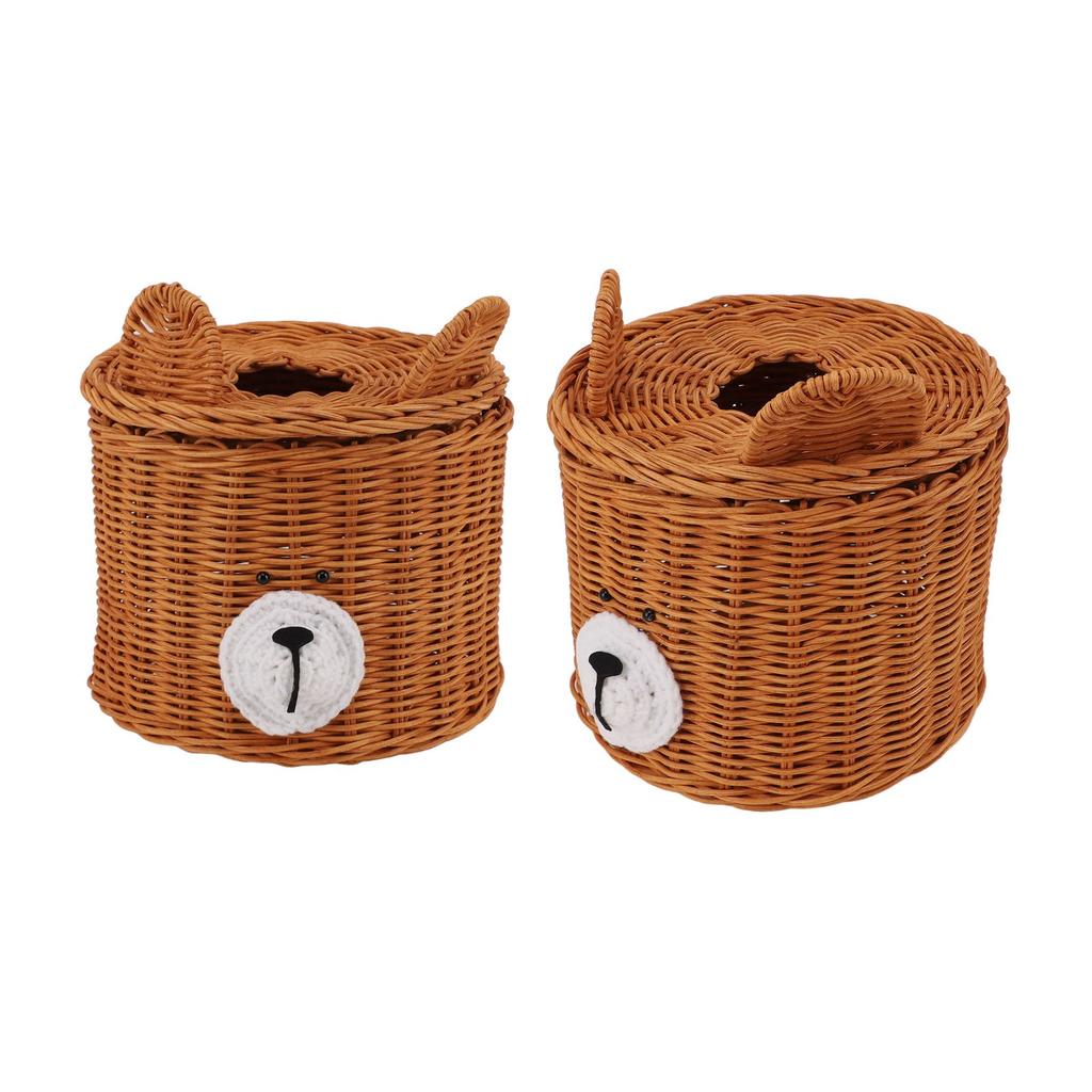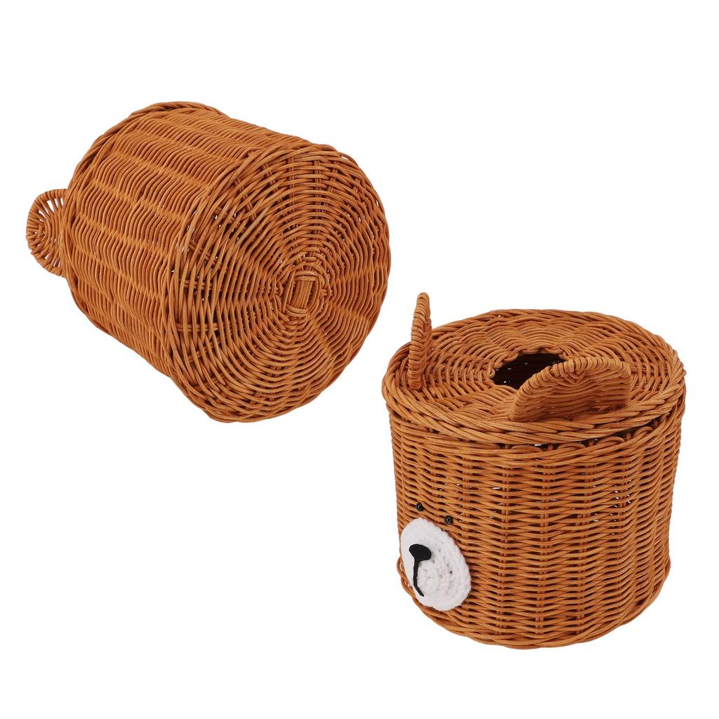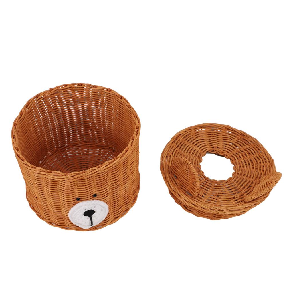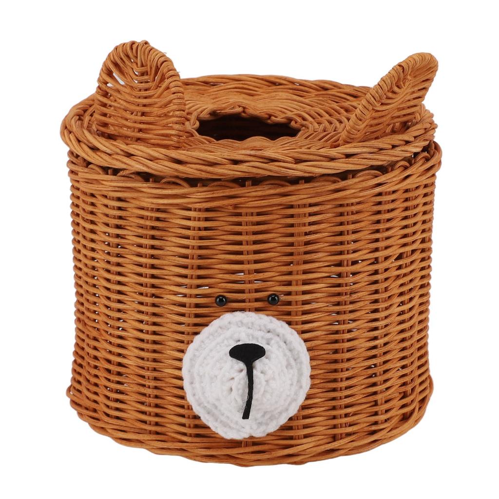 Чехол для салфеток Ротанг Милый медведь Коричневый с крышкой Легкий доступ Круглый Легкий в уходе Универсальный