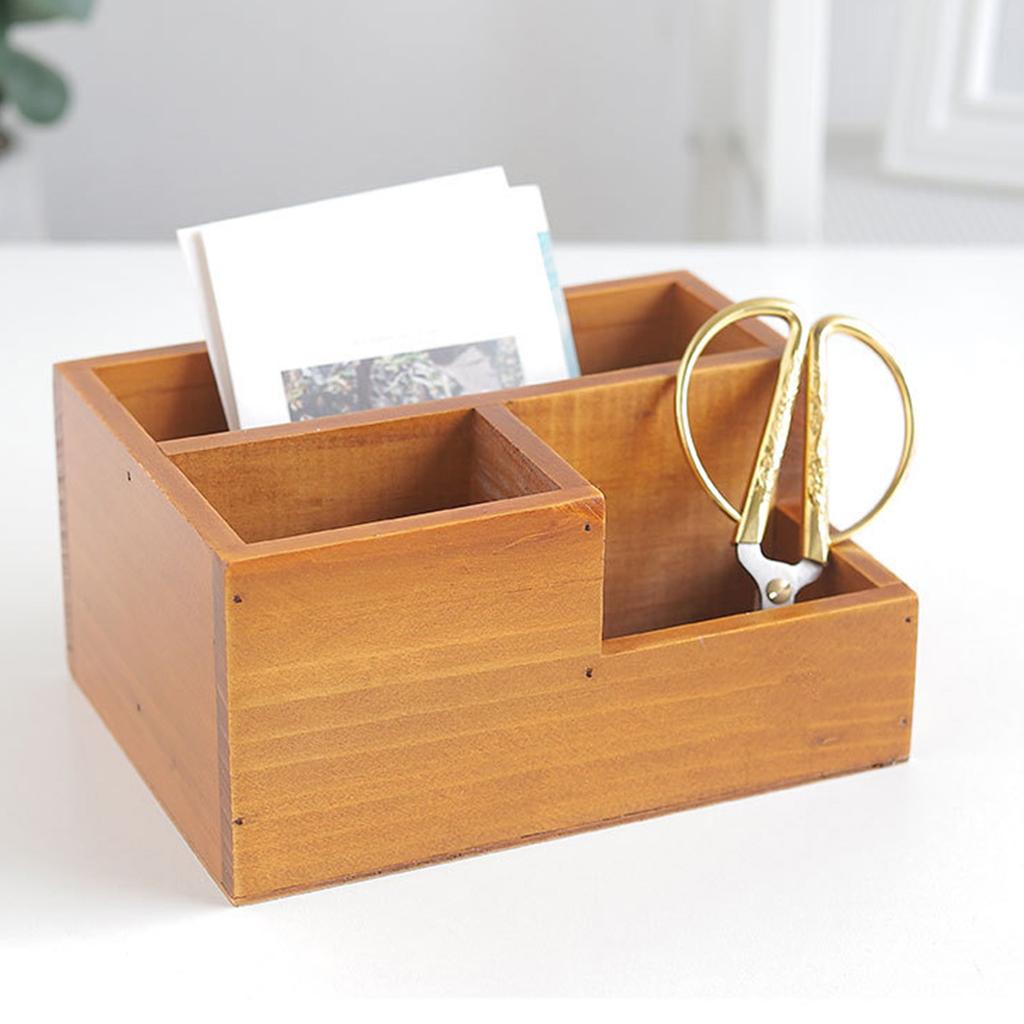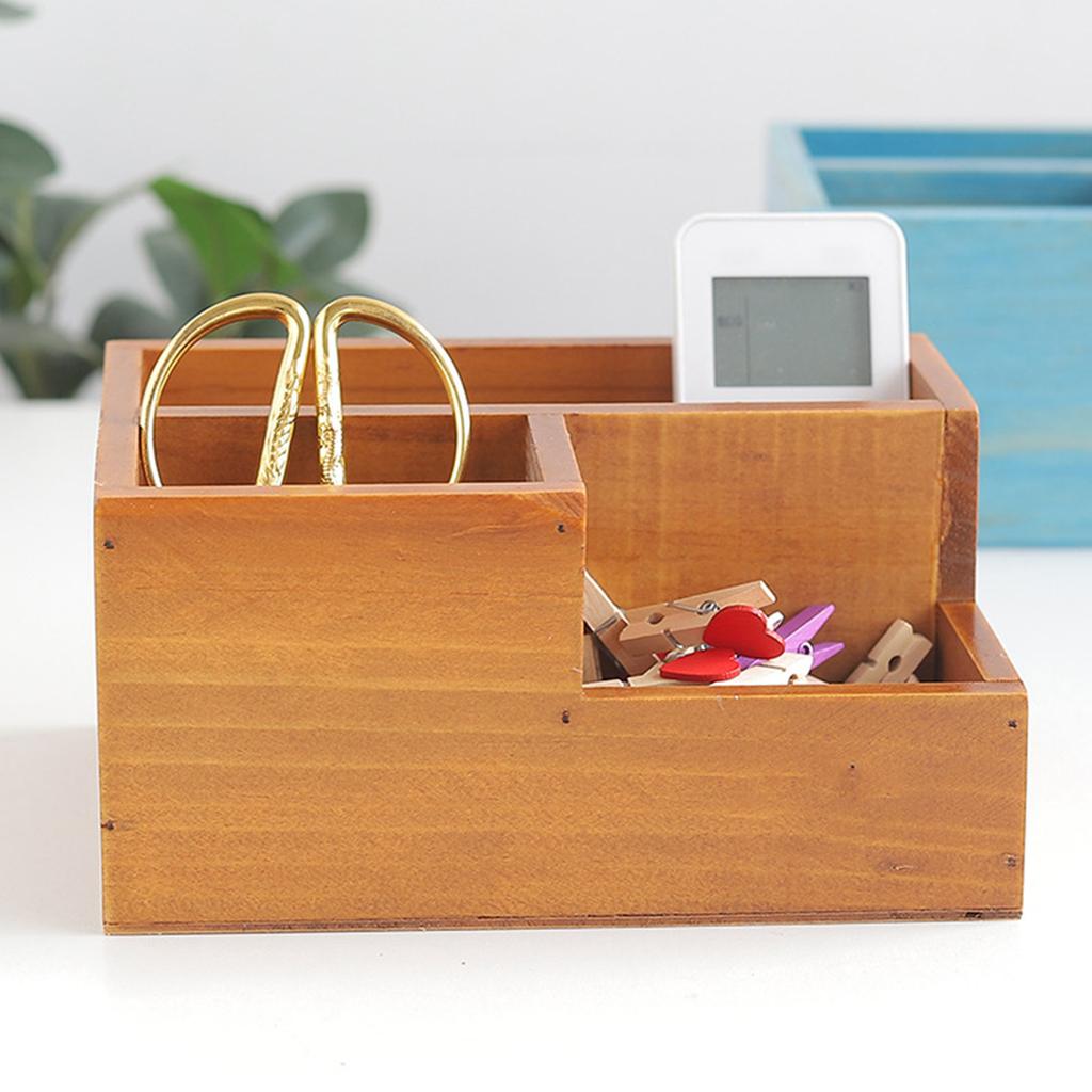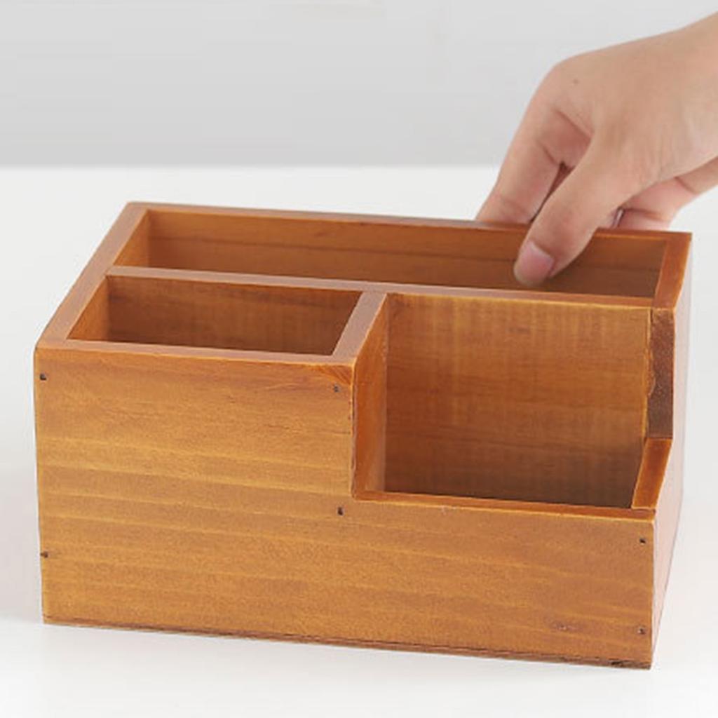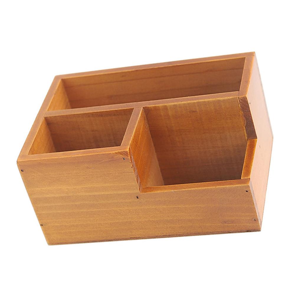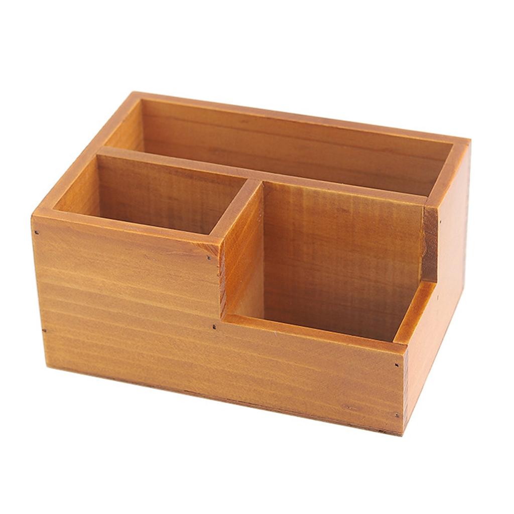 Деревянный держатель пульта дистанционного управления многофункциональный настольный ящик для хранения с 3 отделениями для офисного стола
