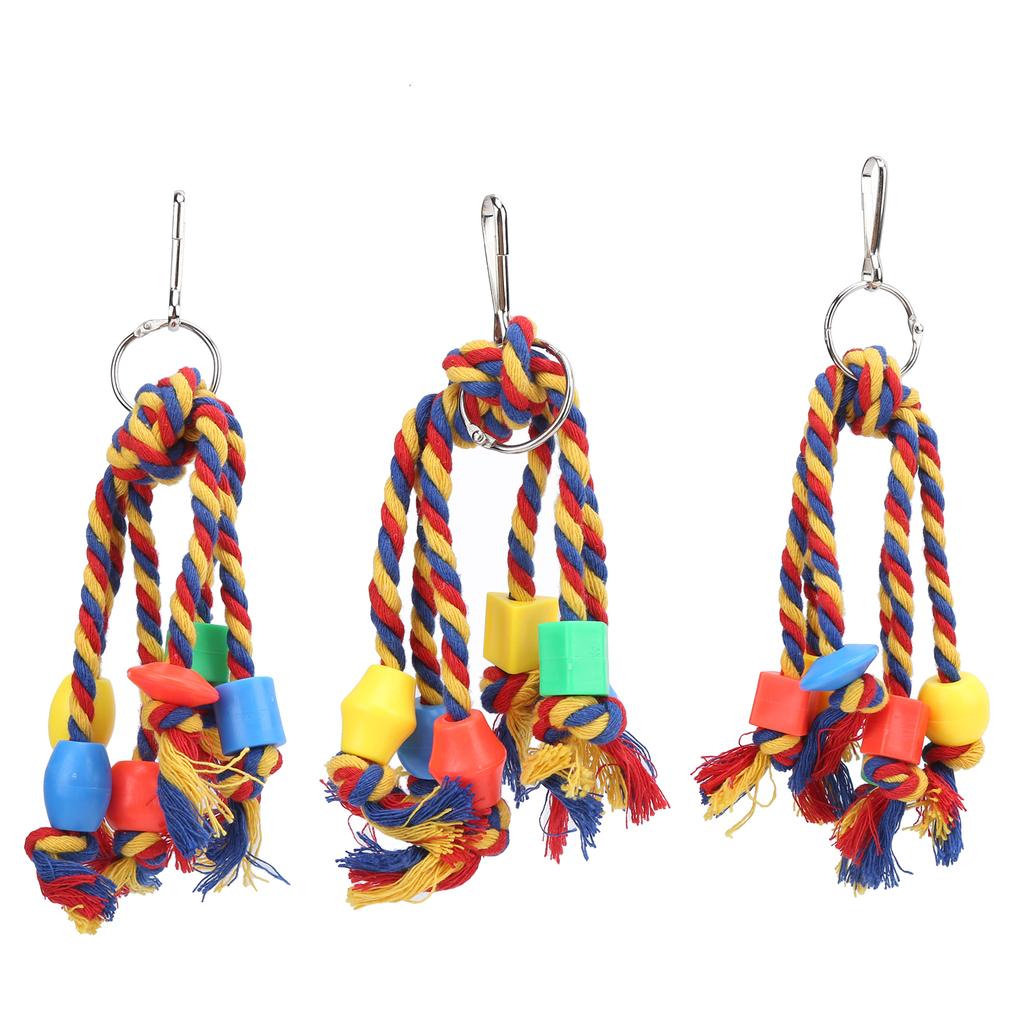 Игрушка для жевания птиц, цветная хлопковая веревка, пластиковые бусины, веревка для укусов для маленьких попугаев — купить товар онлайн с бесплатной доставкой по всему миру!