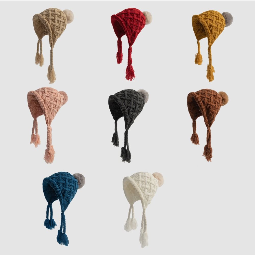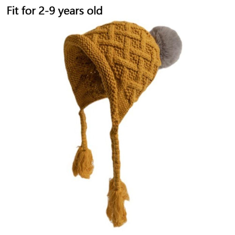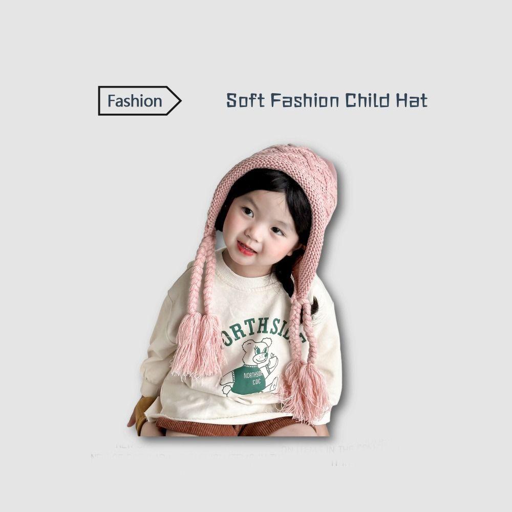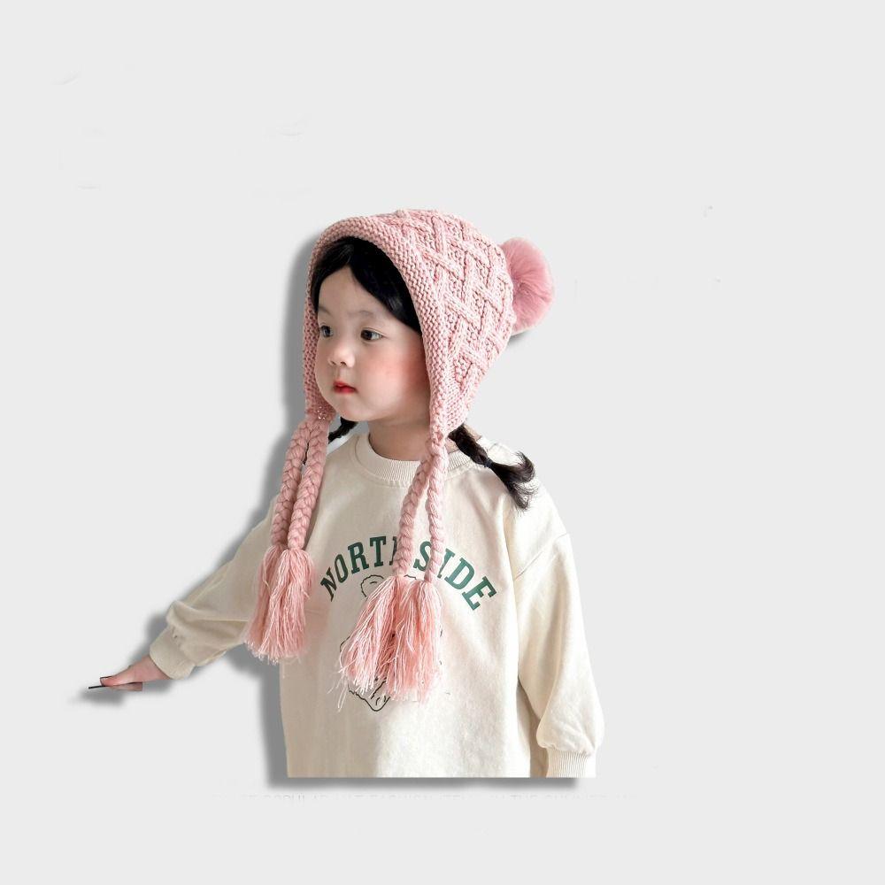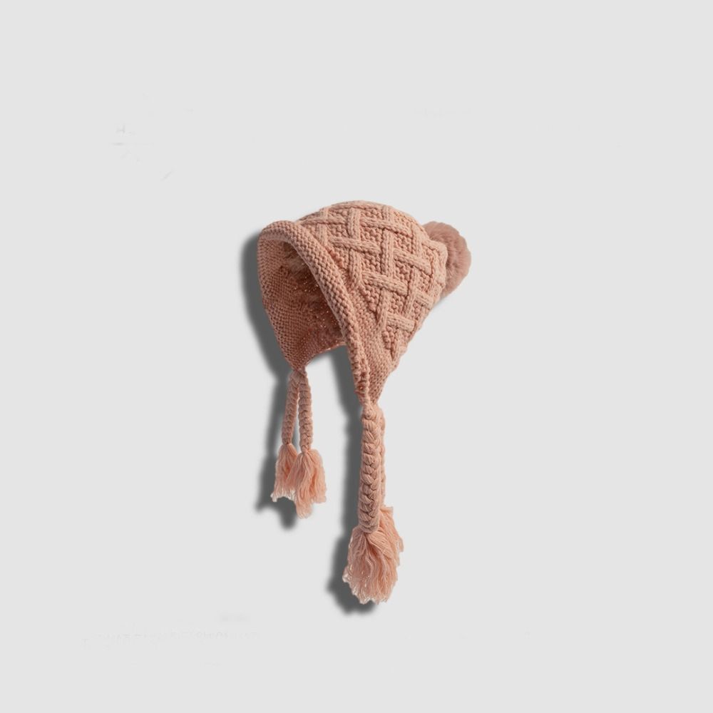 Вязаная шапка с кисточкой и косичками, осенне-зимняя шапка для защиты ушей, модная шапка принцессы для детей