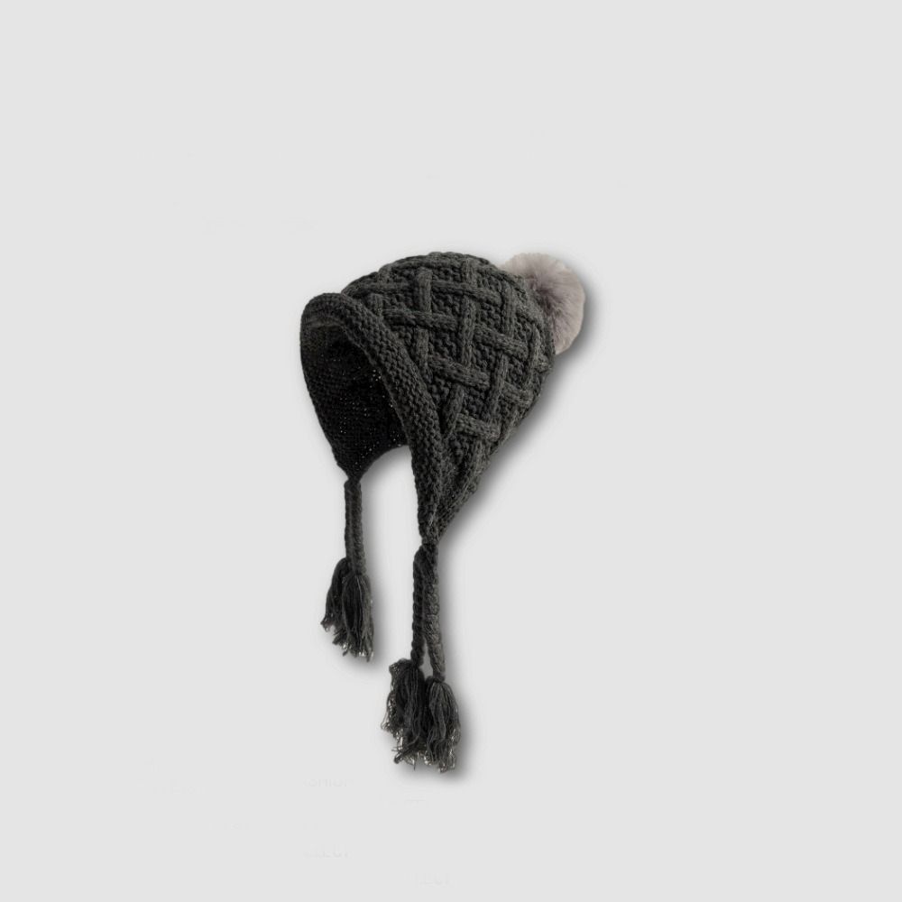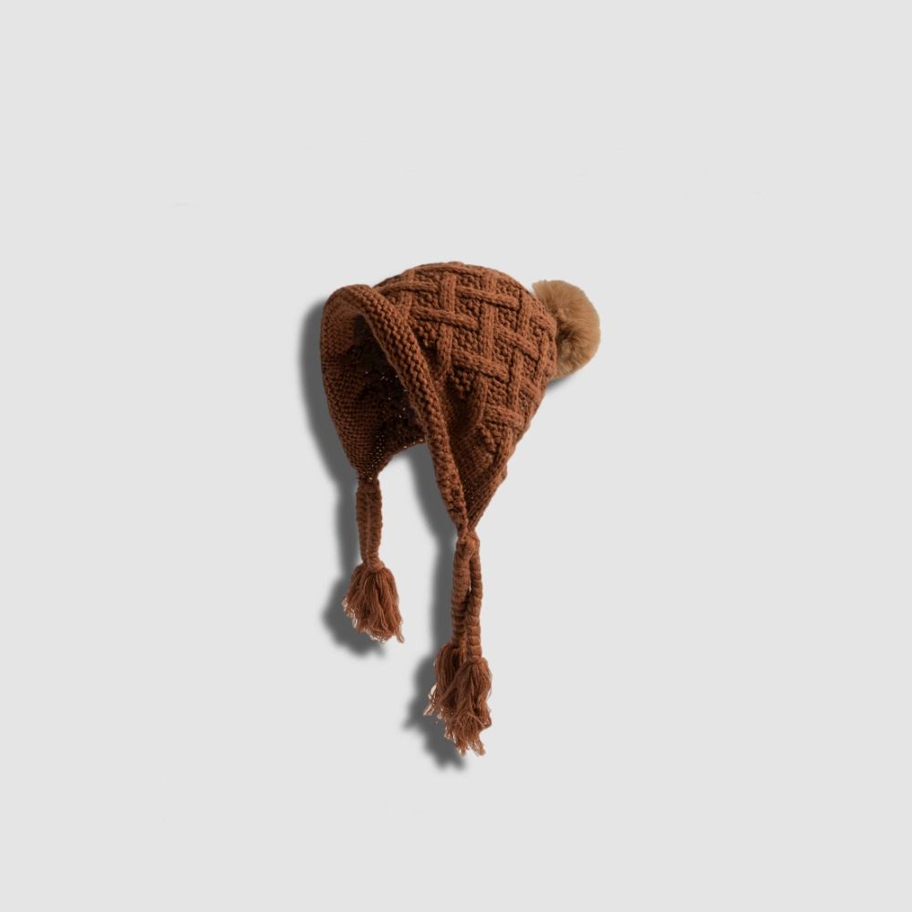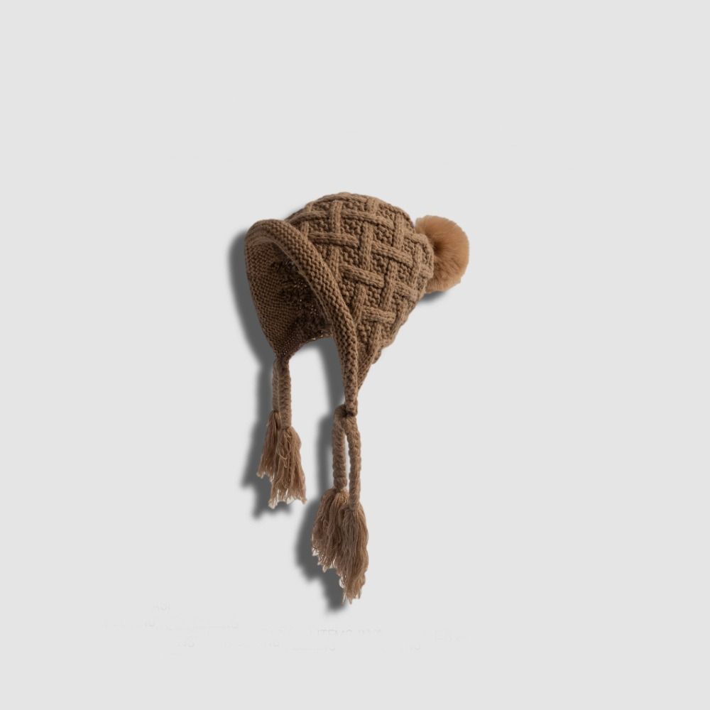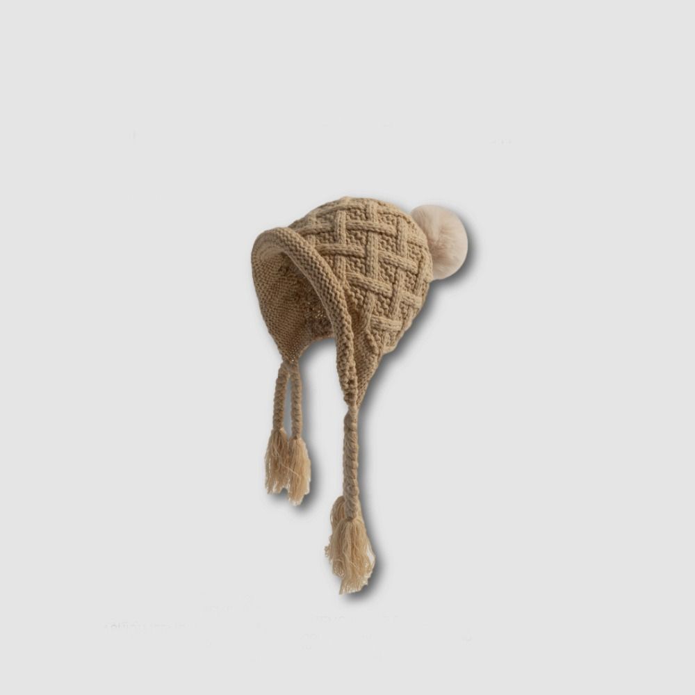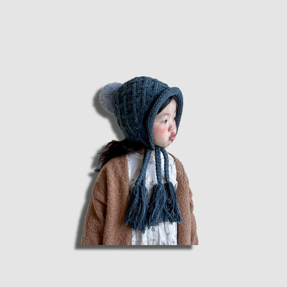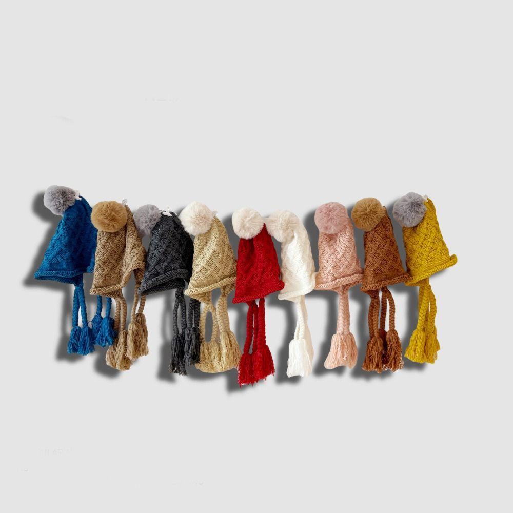 Вязаная шапка с кисточкой и косичками, осенне-зимняя шапка для защиты ушей, модная шапка принцессы для детей