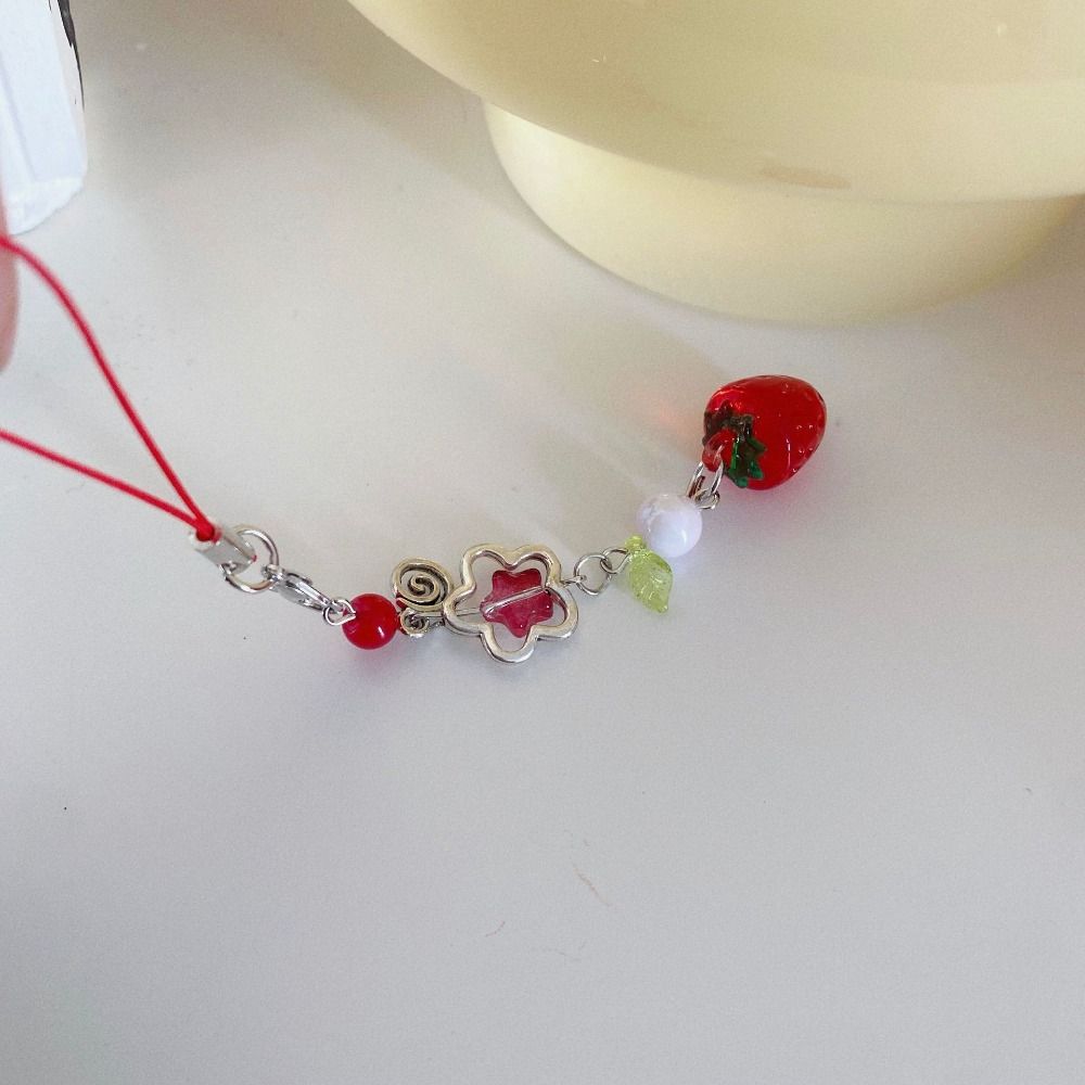 Beaded Mobile Phone Strap Strawberry Mobile Phone Key Chain Sweet Phone Lanyard