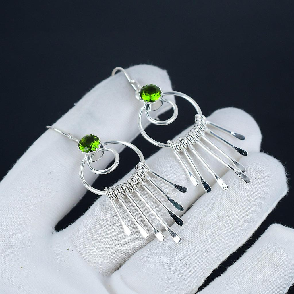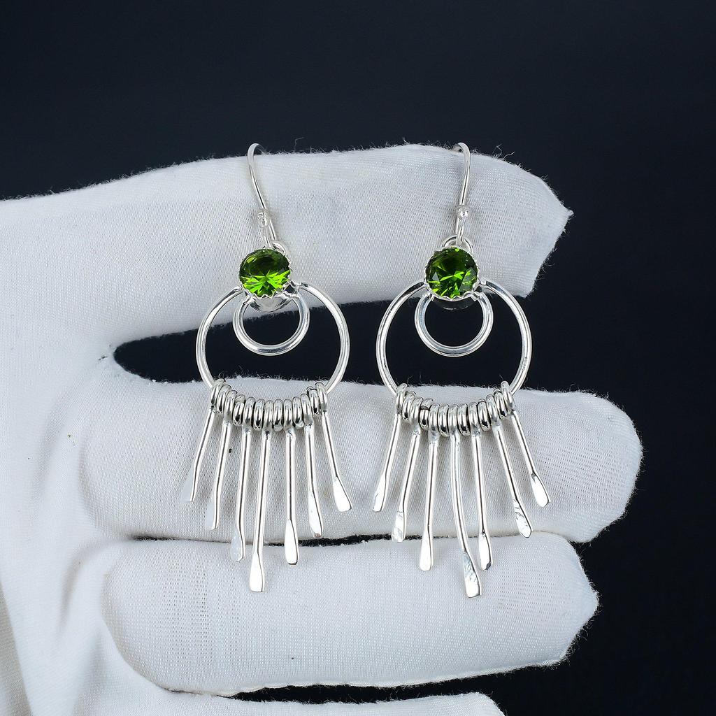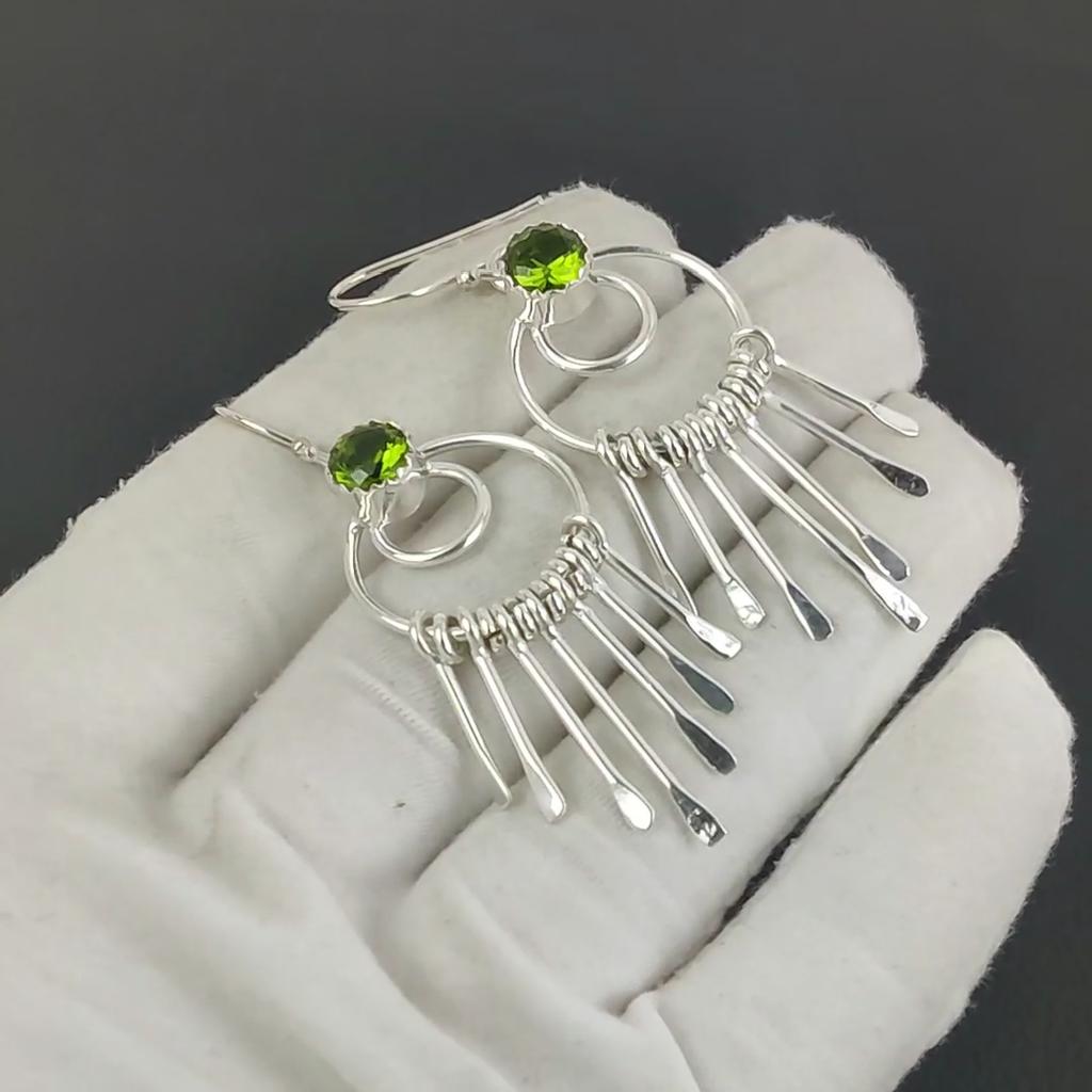 Красивые серьги-крючки с драгоценными камнями перидот, серьги из стерлингового серебра 925 пробы, серьги-подвески из серебра ручной работы в стиле бохо, подарок на день рождения