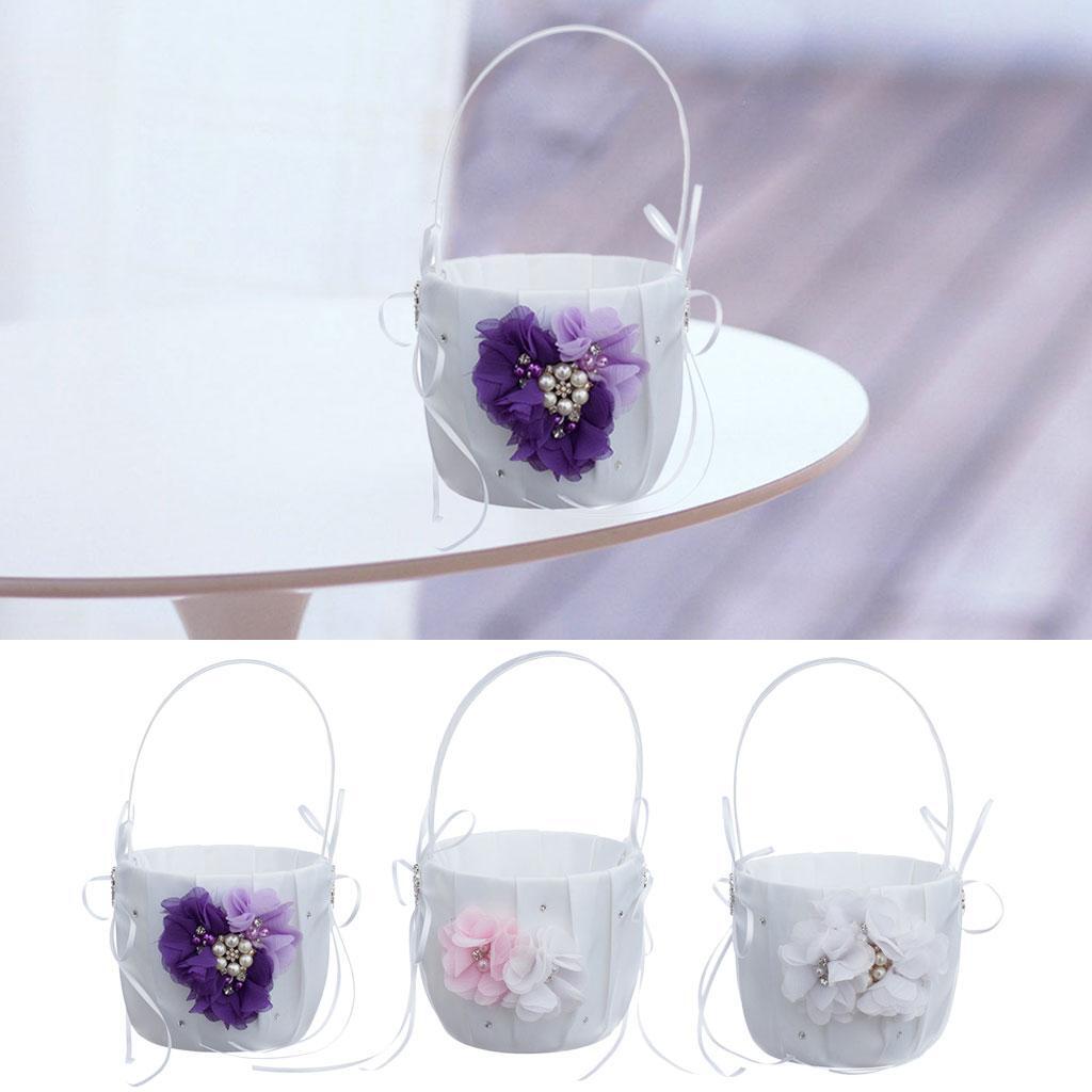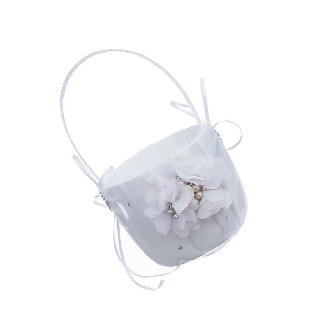 Свадебная корзина для девочек-цветочниц с бантом из искусственного жемчуга и декором в форме сердца