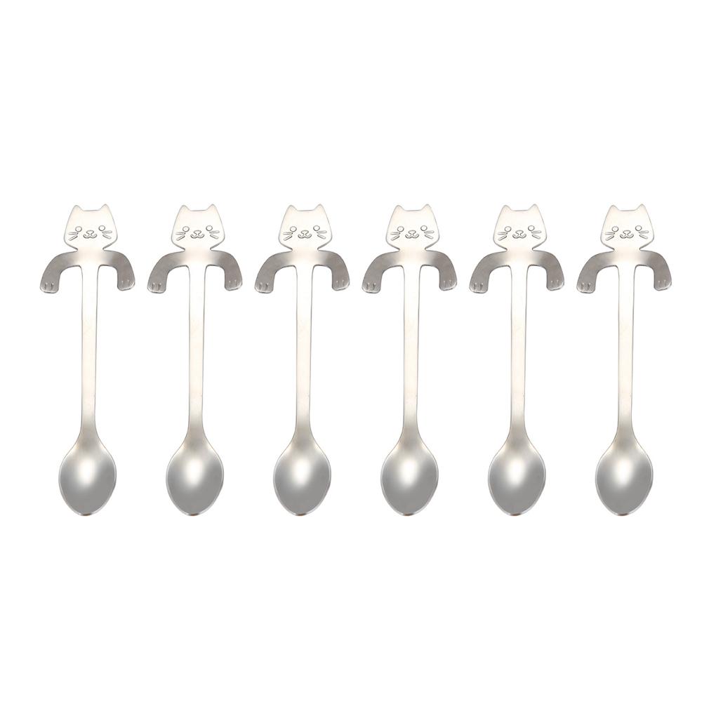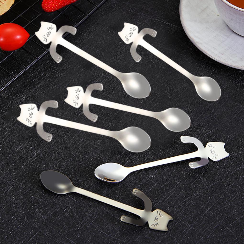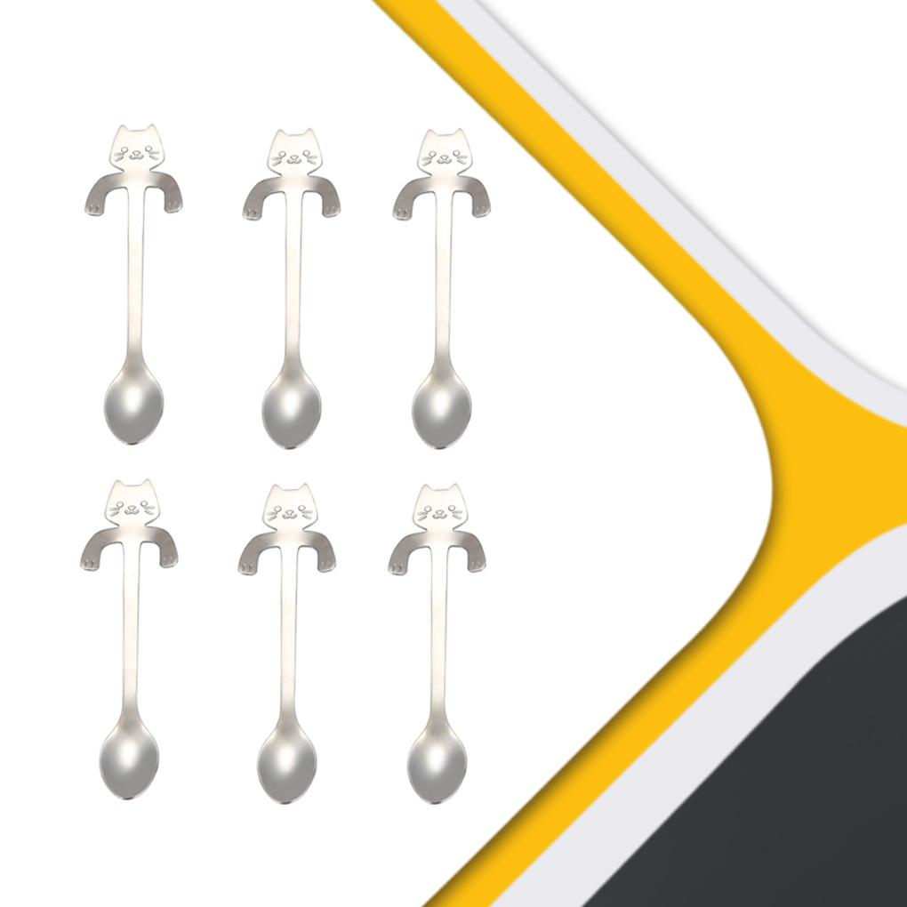 6 шт. подвесная ложка для чашки, милая кофейная ложка, чайная ложка, переносная нержавеющая сталь, столовая посуда для мороженого с длинной ручкой