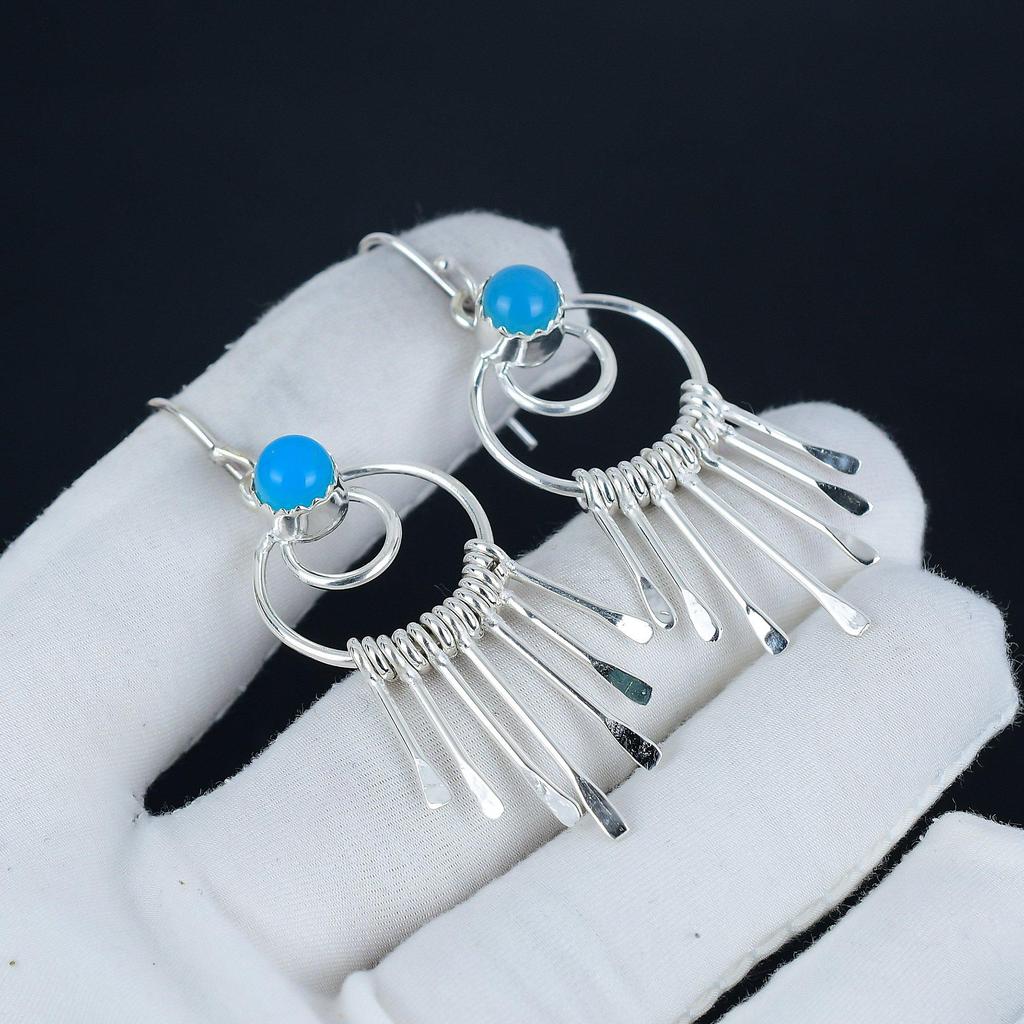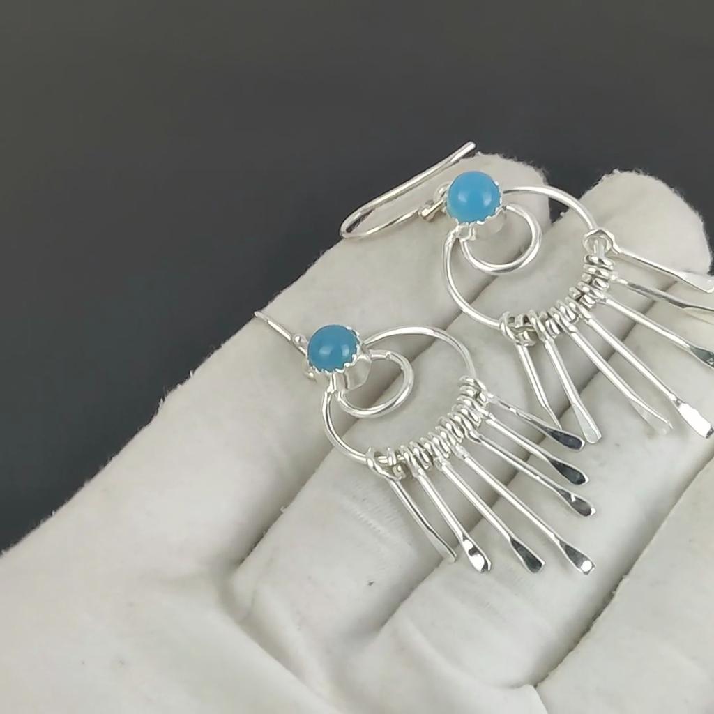 Серьги из серебра 925 пробы с синим халцедоном ручной работы