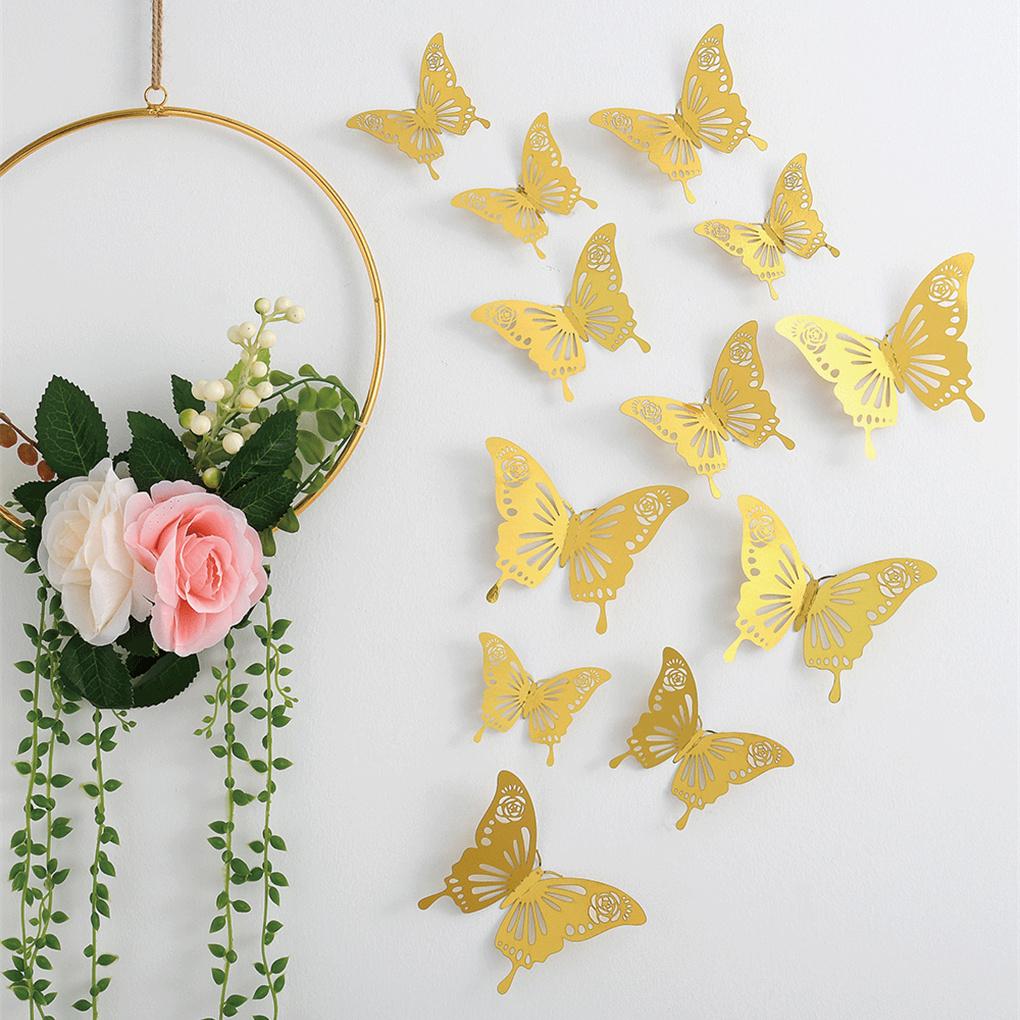 Набор из 12 3D полых бумажных наклеек на стену, бытовая гостиная, художественное ремесло, украшение, наклейки, праздничный декор для вечеринки, подарки