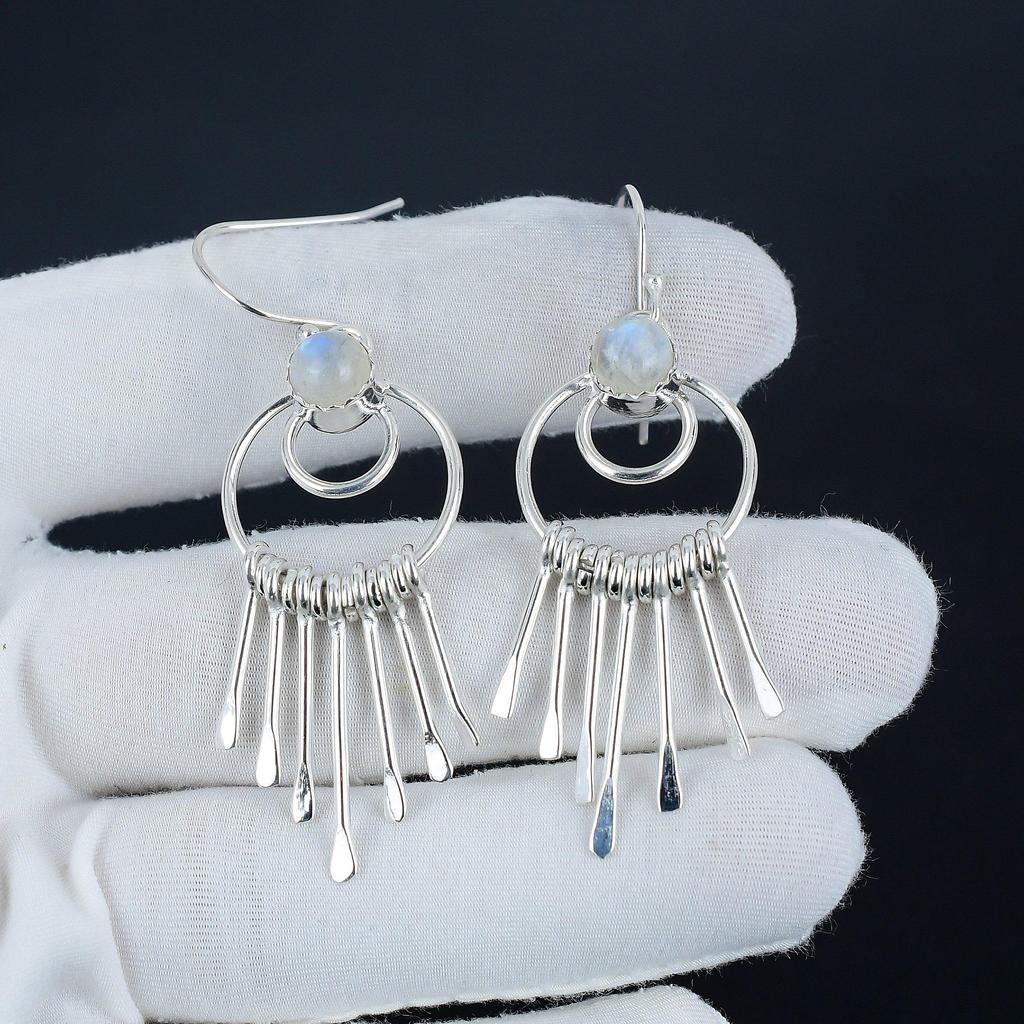 Серьги ручной работы из серебра 925 пробы с радужным лунным камнем