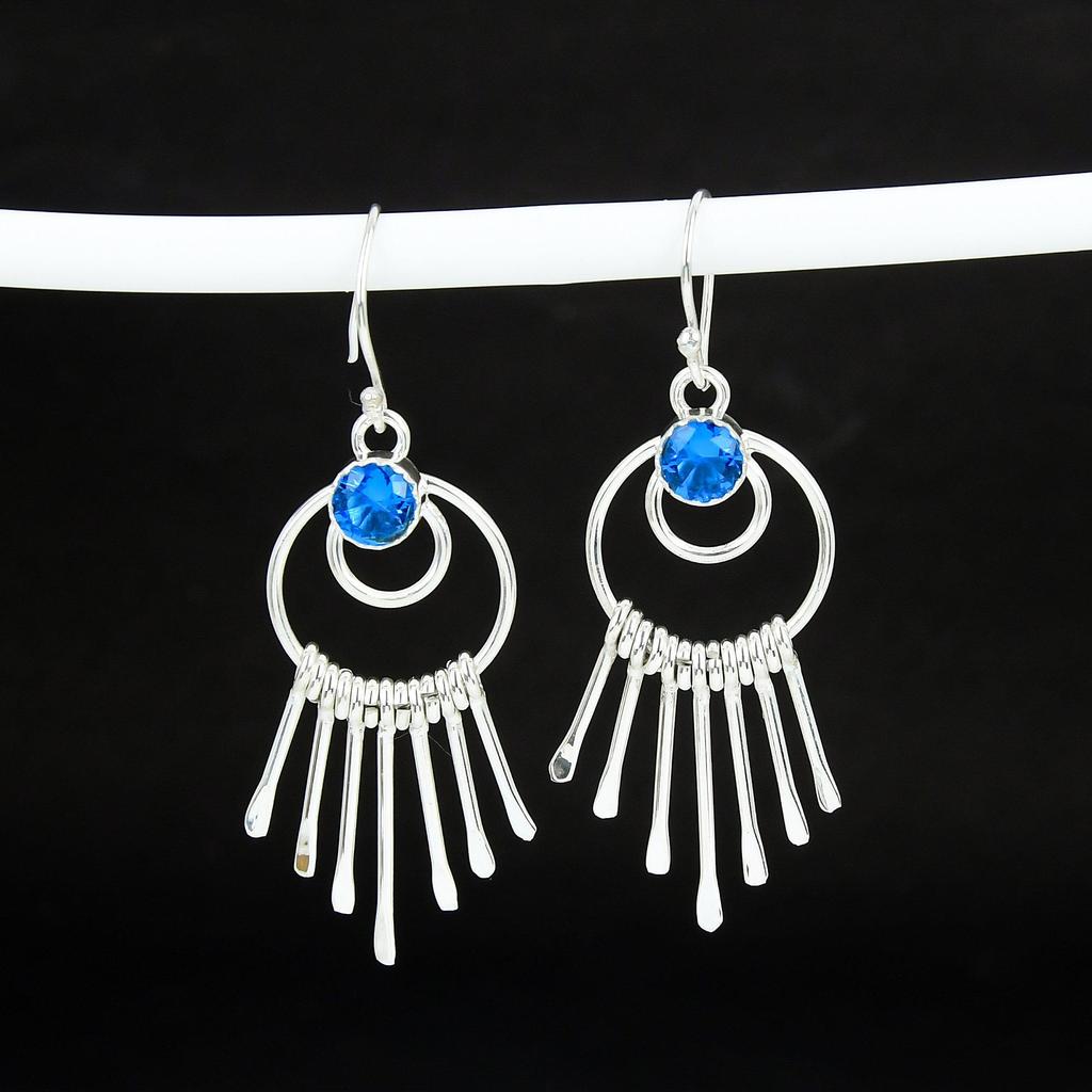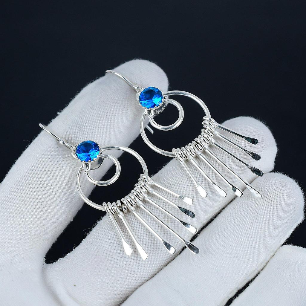 Серьги ручной работы из серебра 925 пробы с голубым топазом Siwss