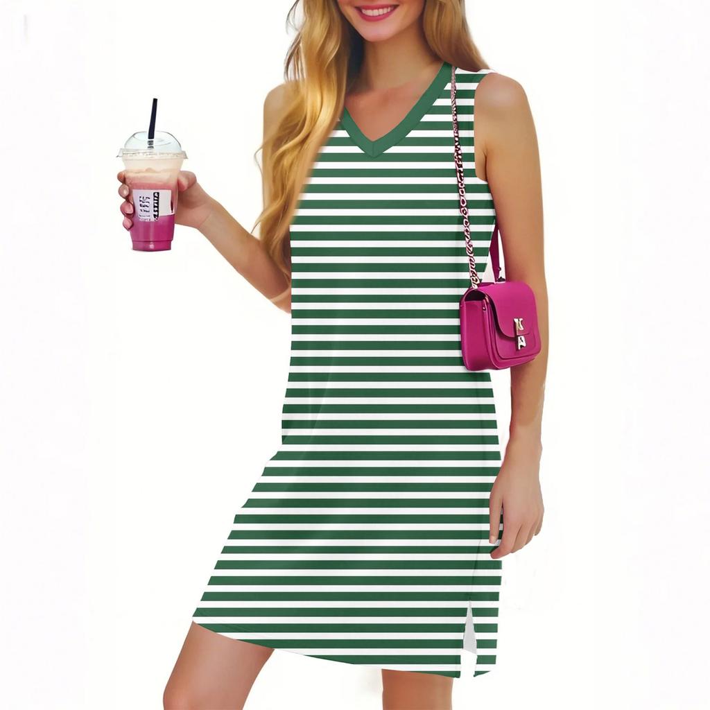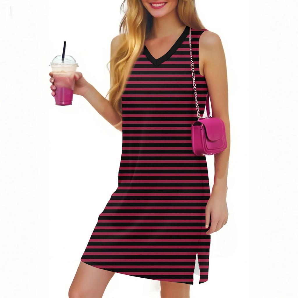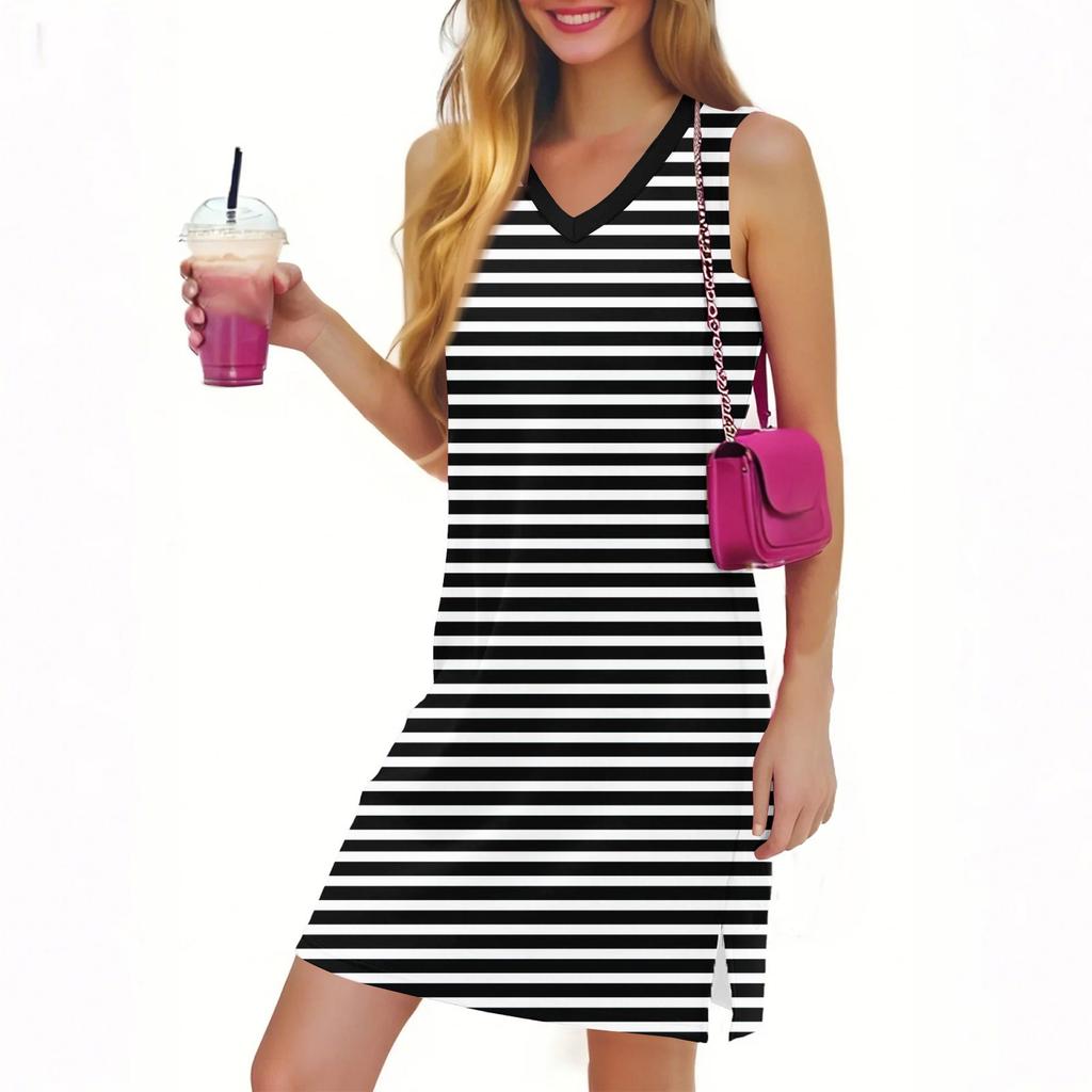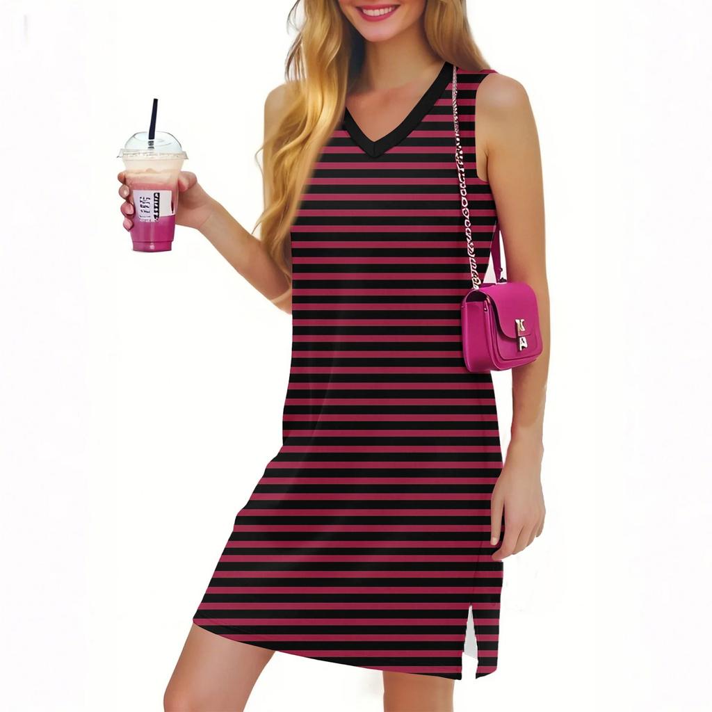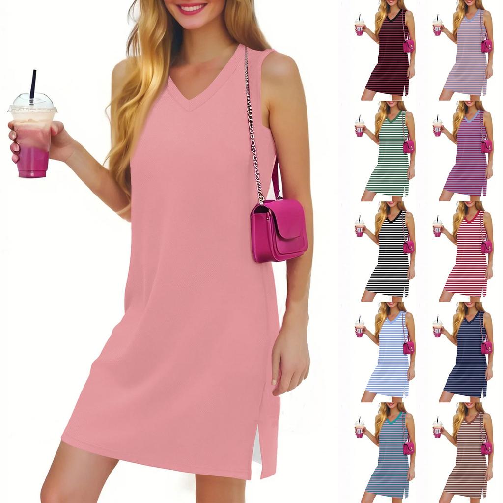 Женское повседневное модное сексуальное платье без рукавов с V-образным вырезом и разрезом по низу в полоску