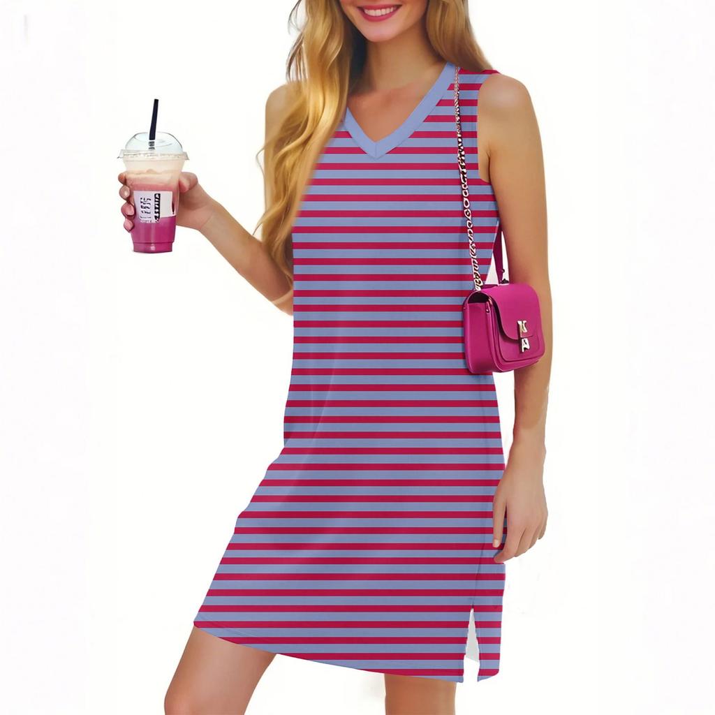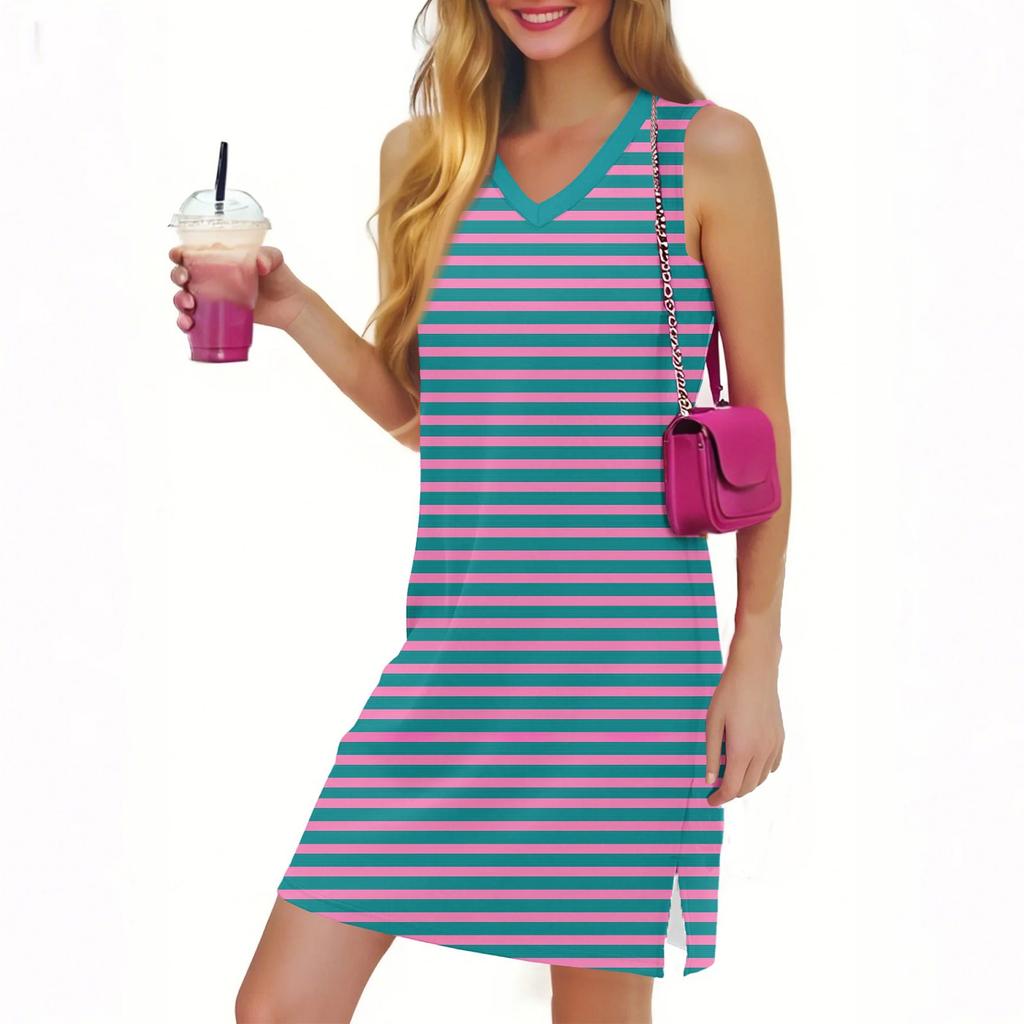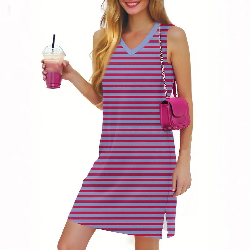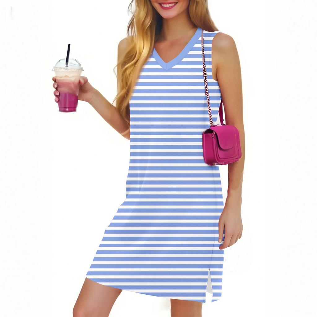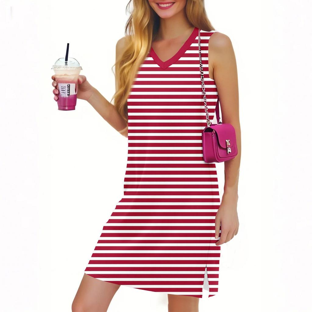 Женское повседневное модное сексуальное платье без рукавов с V-образным вырезом и разрезом по низу в полоску