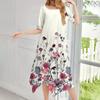 Женское повседневное модное платье миди с круглым вырезом и коротким рукавом с принтом и неровным подолом