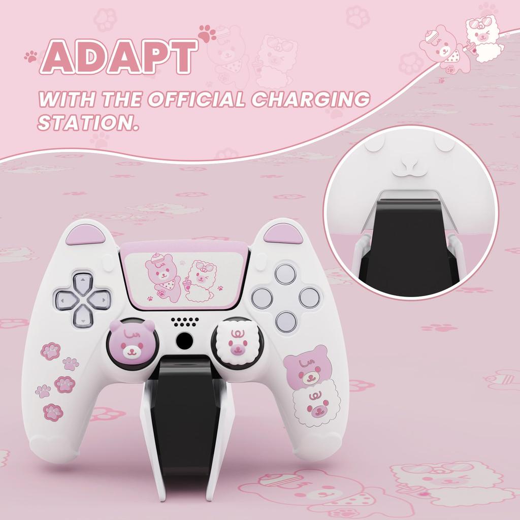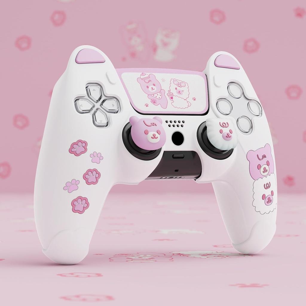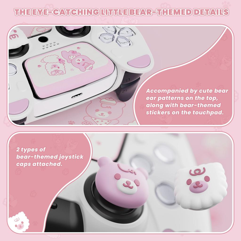 Силиконовый чехол, совместимый с PlayVital ps5, совместимый с зарядной станцией, с чехлом в виде милого медвежонка, колпачок для джойстика, наклейка на сенсорную панель