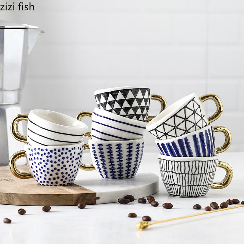 Керамическая кружка для кофе с молоком, настольная, с геометрическим узором, чашки для чая и молока, 100 мл, креативная домашняя кухонная кофейная посуда, ручка, кружка для чая и кофе — купить товар онлайн с бесплатной доставкой по всему миру!