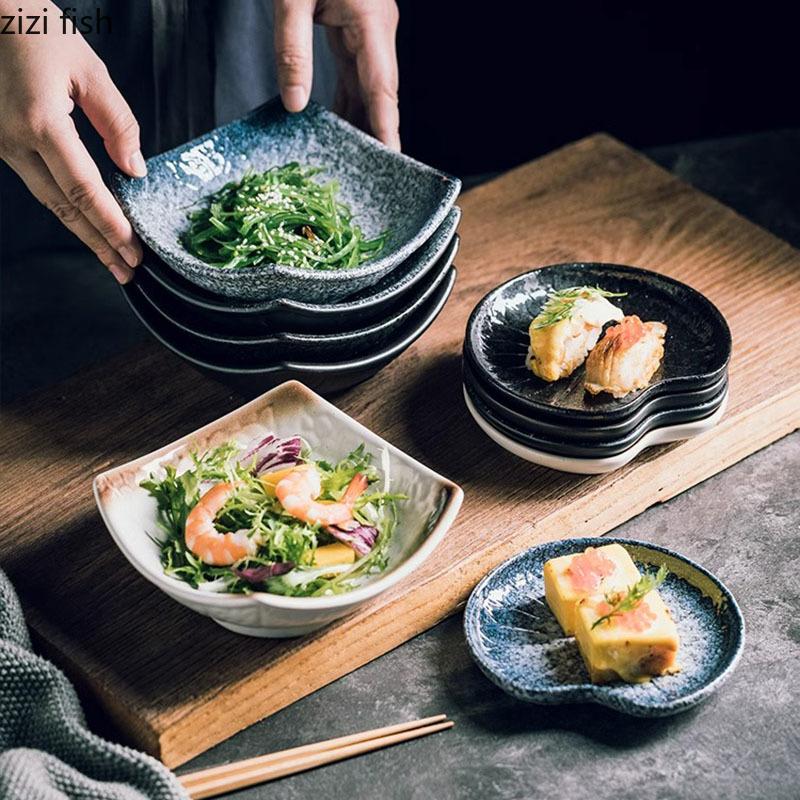 Ретро керамическая тарелка для приправ Тарелка в виде листа лотоса Тарелка для закусок для суши Блюда для закусок Посуда для соевого соуса Посуда для молекулярной кухни