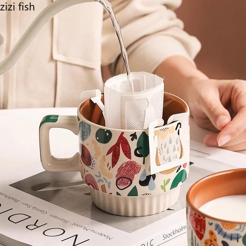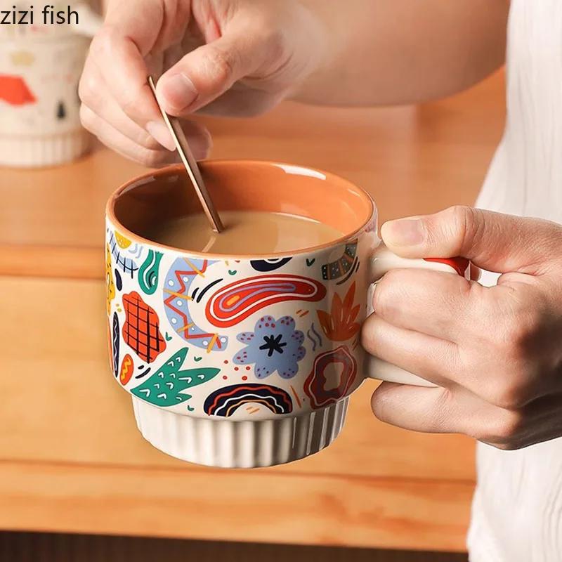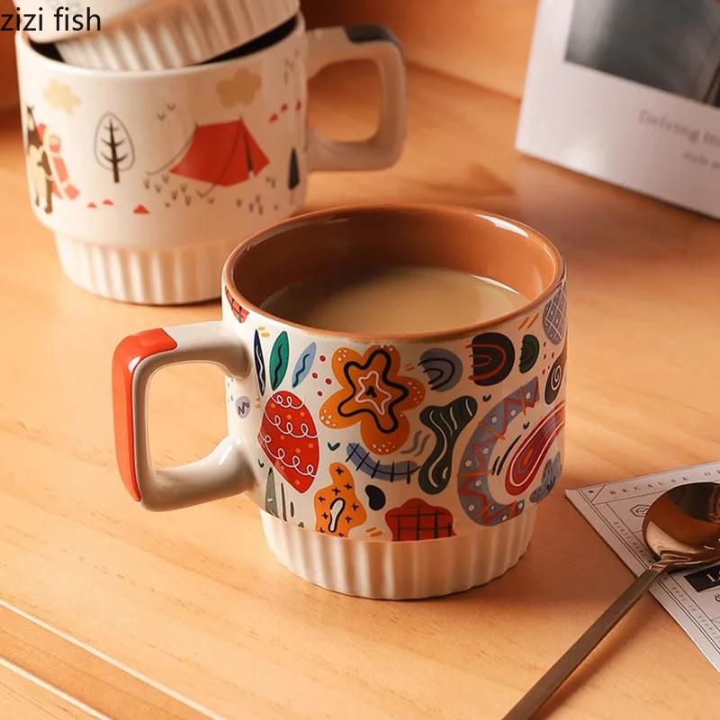 Ретро керамическая кружка с рисунком от руки кружка для кофе чашка для чая с молоком мультяшные чашки для сока домашние чашки для завтрака парные чашки для воды