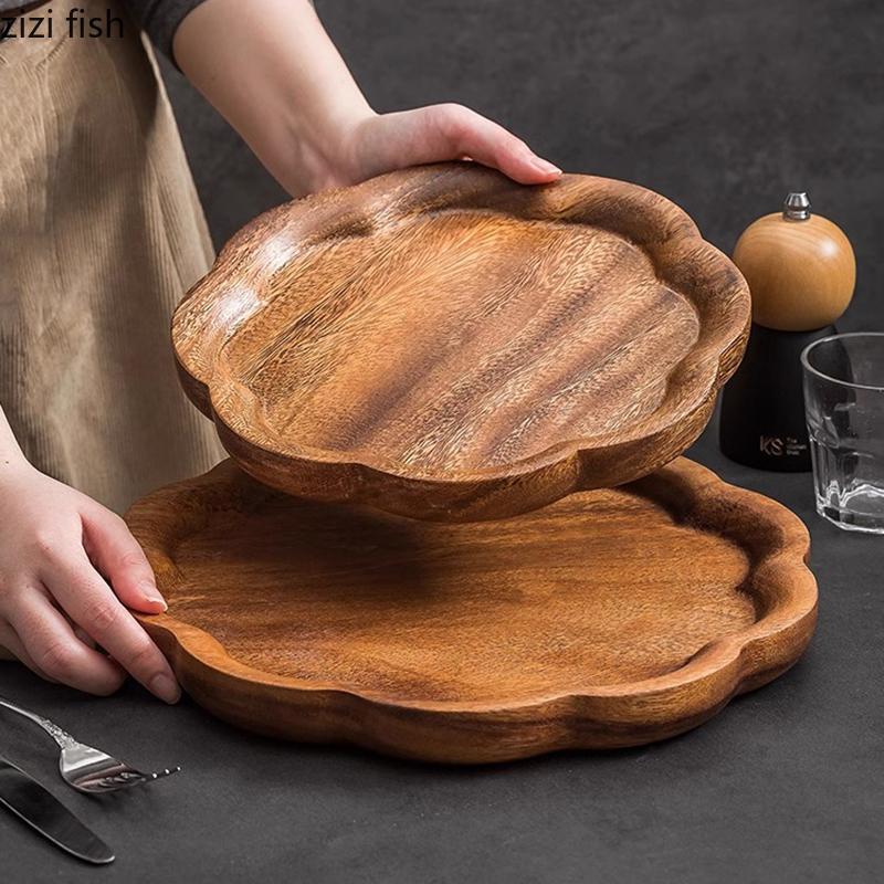 Тарелка в форме цветка из орехового дерева Ресторанная тарелка для пиццы Тарелка для стейка Десертное блюдо Фруктовые тарелки Молекулярная пищевая специальная посуда