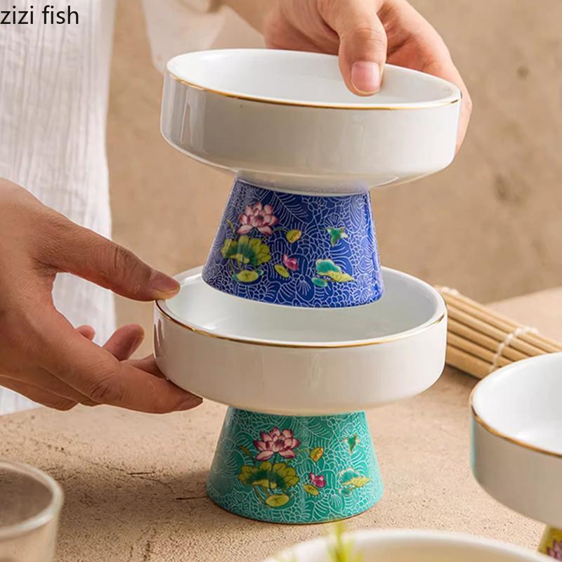 Цветная эмалированная керамическая миска с высокой ножкой Миска для десерта Миска для йогурта Миски для закусок Миски для суши Специальная посуда для молекулярной кухни