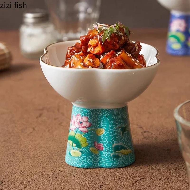 Цветная эмалированная керамическая миска в форме цветка на высокой ножке, миска для дим-самов, десертная миска, миски для суши, креативная посуда для молекулярной кухни